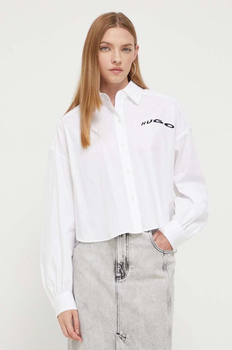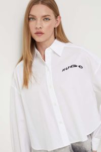 Бавовняна сорочка HUGO жіноча колір білий relaxed класичний комір (3523412)
