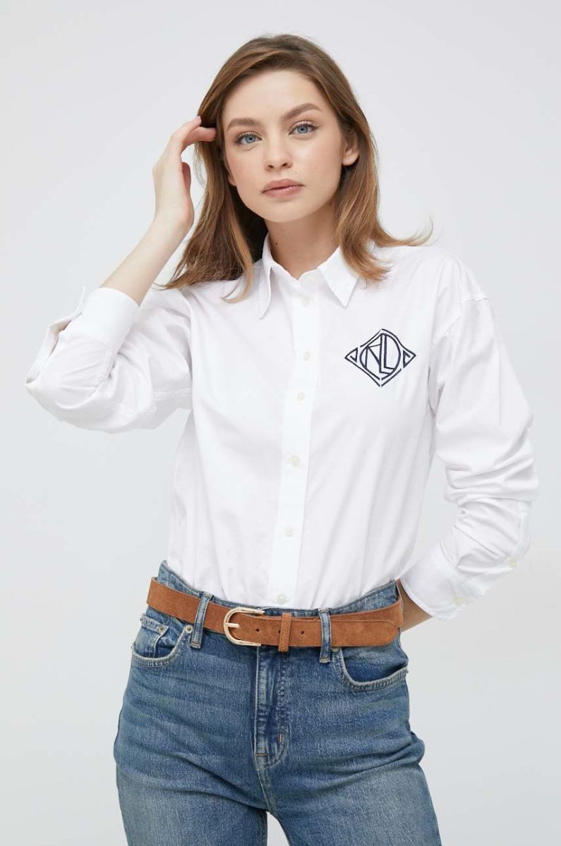 Бавовняна сорочка Lauren Ralph Lauren жіноча колір білий relaxed класичний комір