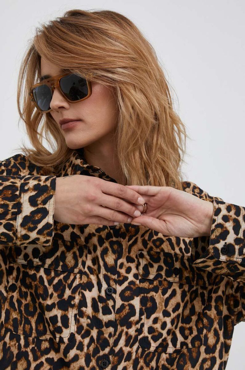 Бавовняна сорочка Lauren Ralph Lauren жіноча колір коричневий regular класичний комір