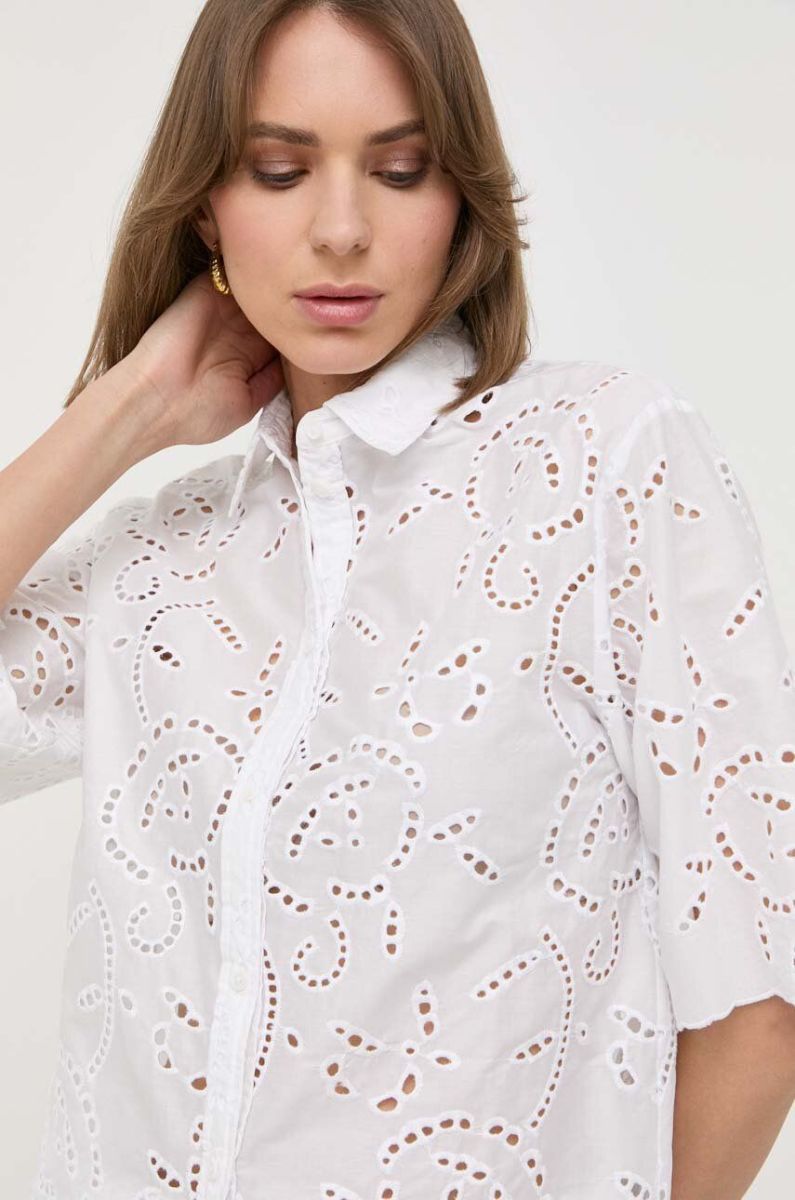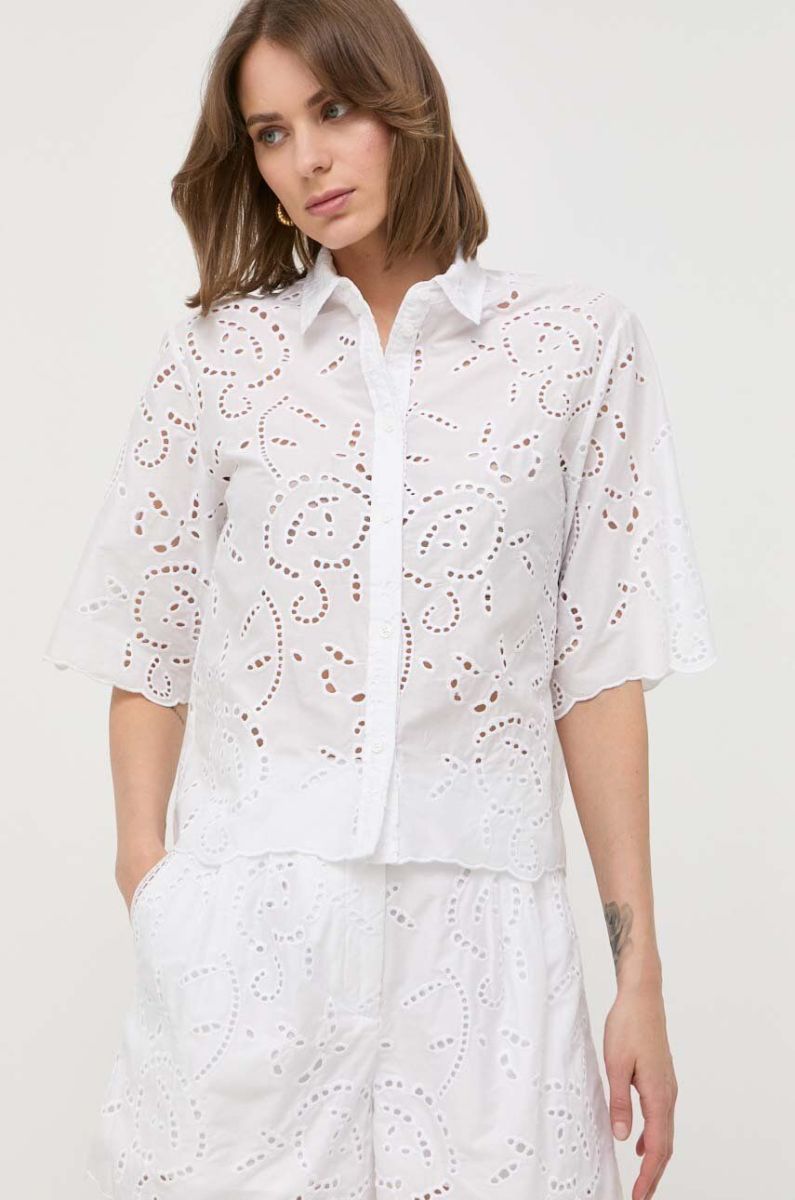 Бавовняна сорочка MAX&Co. жіноча колір білий regular класичний комір