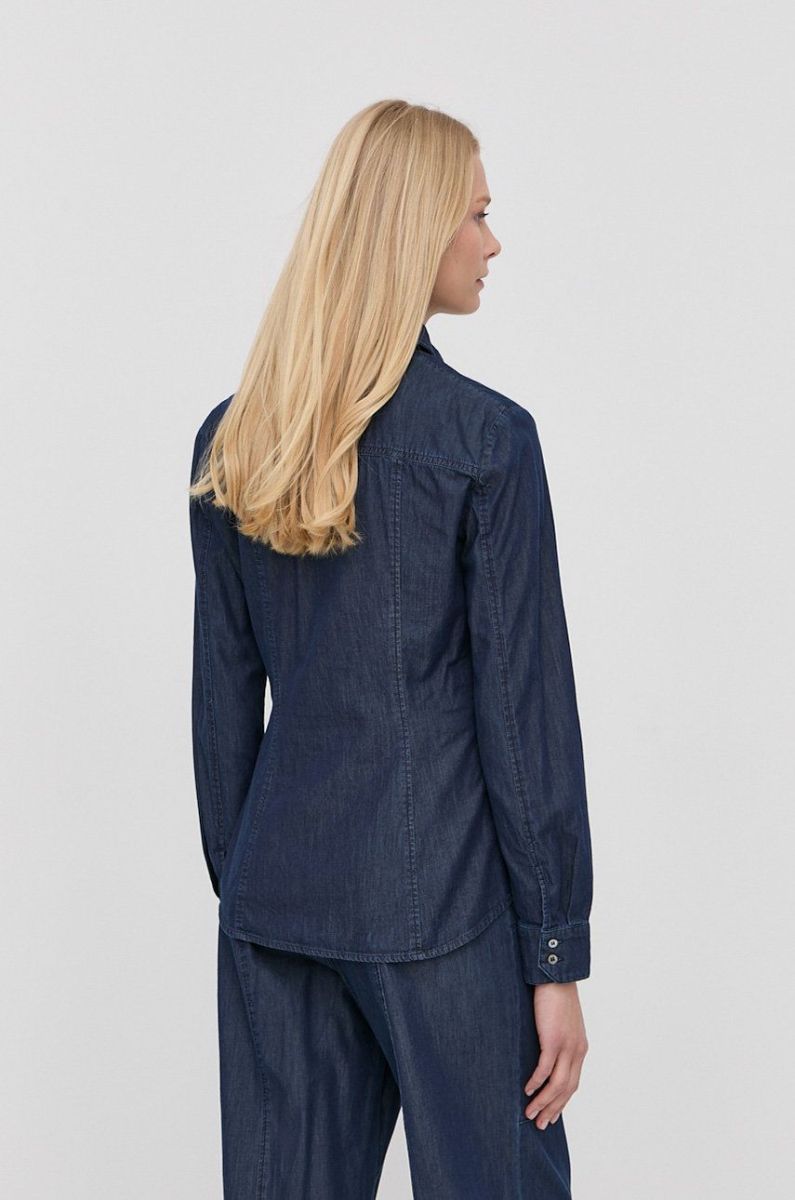 Бавовняна сорочка MAX&Co. жіноча slim класичний комір колір блакитний