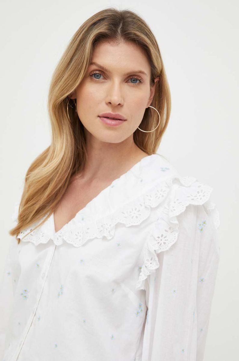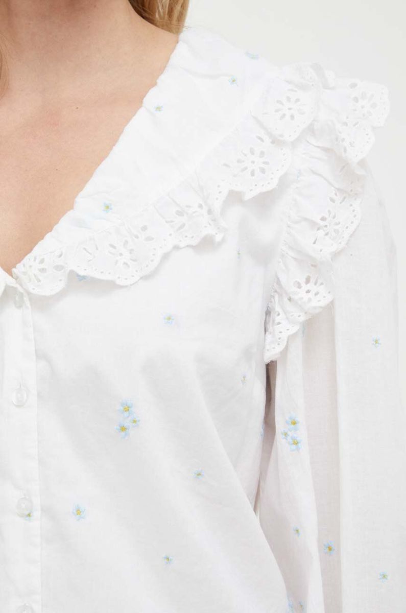 Бавовняна сорочка Notes du Nord Gecco жіноча колір білий regular класичний комір