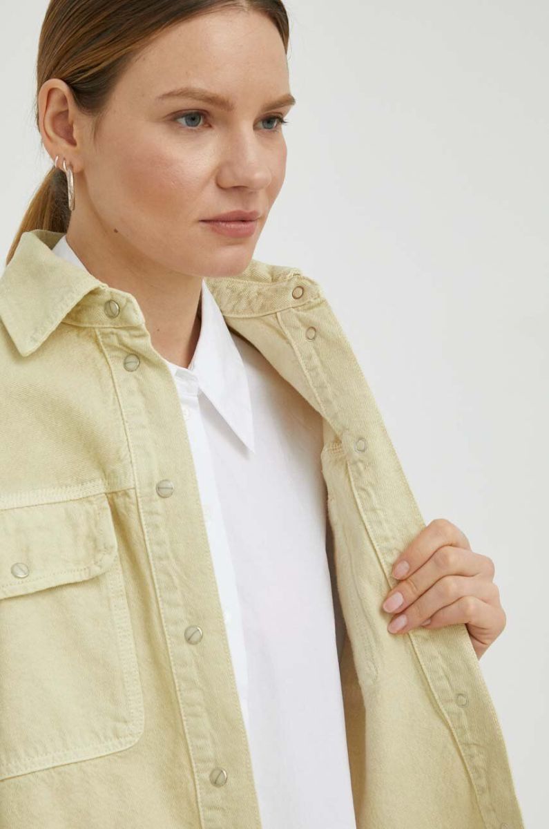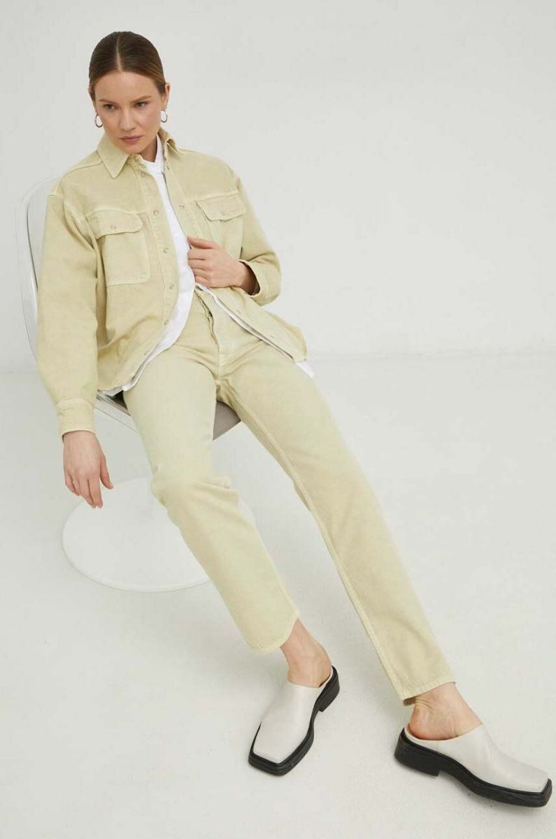 Бавовняна сорочка Samsoe Samsoe жіноча колір зелений relaxed класичний комір