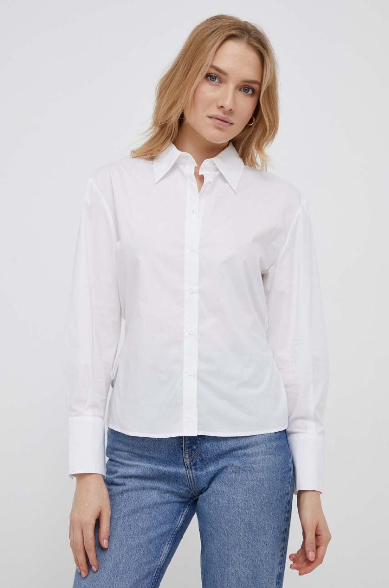 Бавовняна сорочка Sisley жіноча колір білий relaxed класичний комір