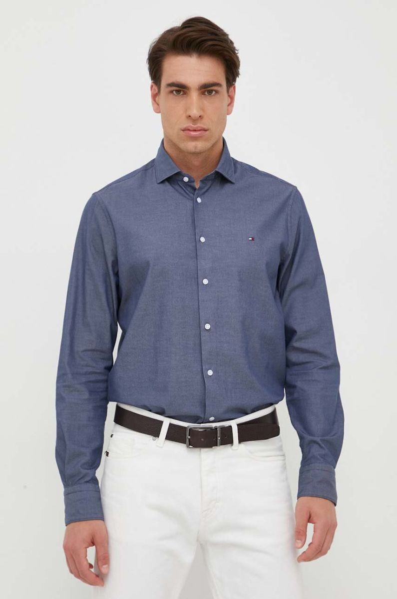 Бавовняна сорочка Tommy Hilfiger чоловіча колір синій regular класичний комір (3324867)