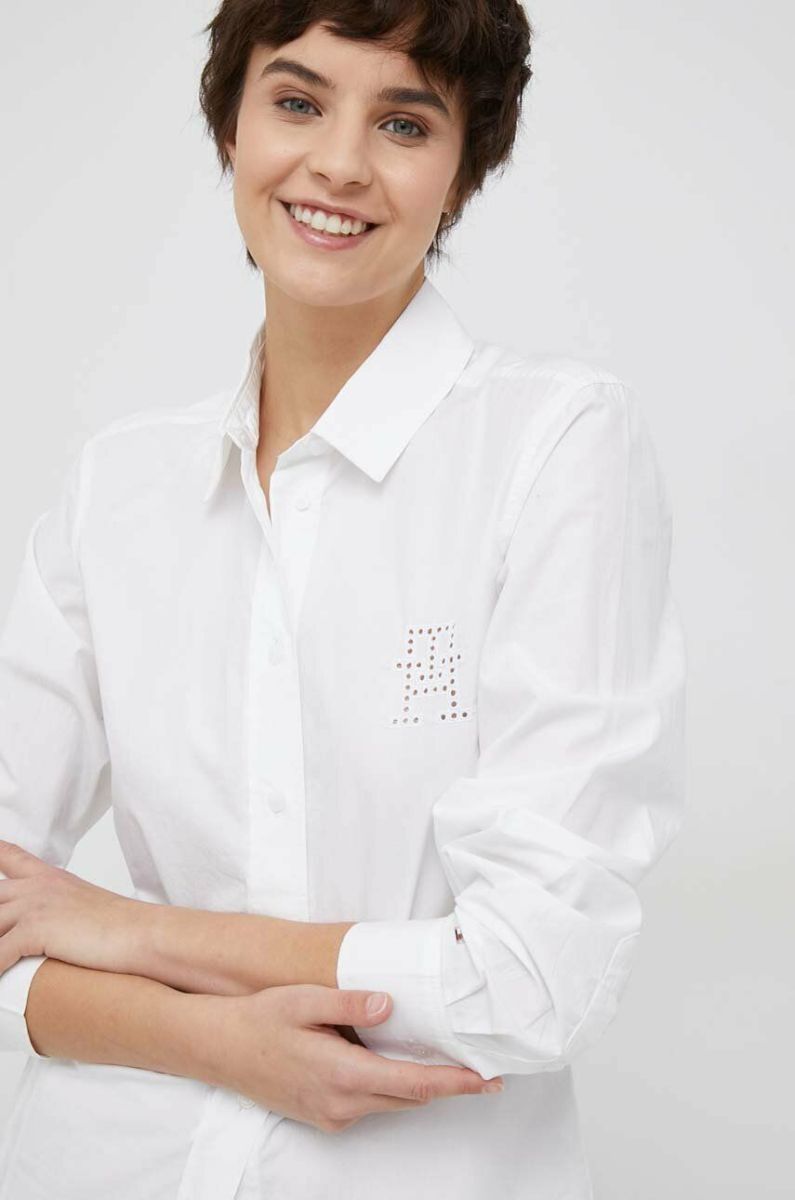Бавовняна сорочка Tommy Hilfiger жіноча колір білий regular класичний комір (3000092)