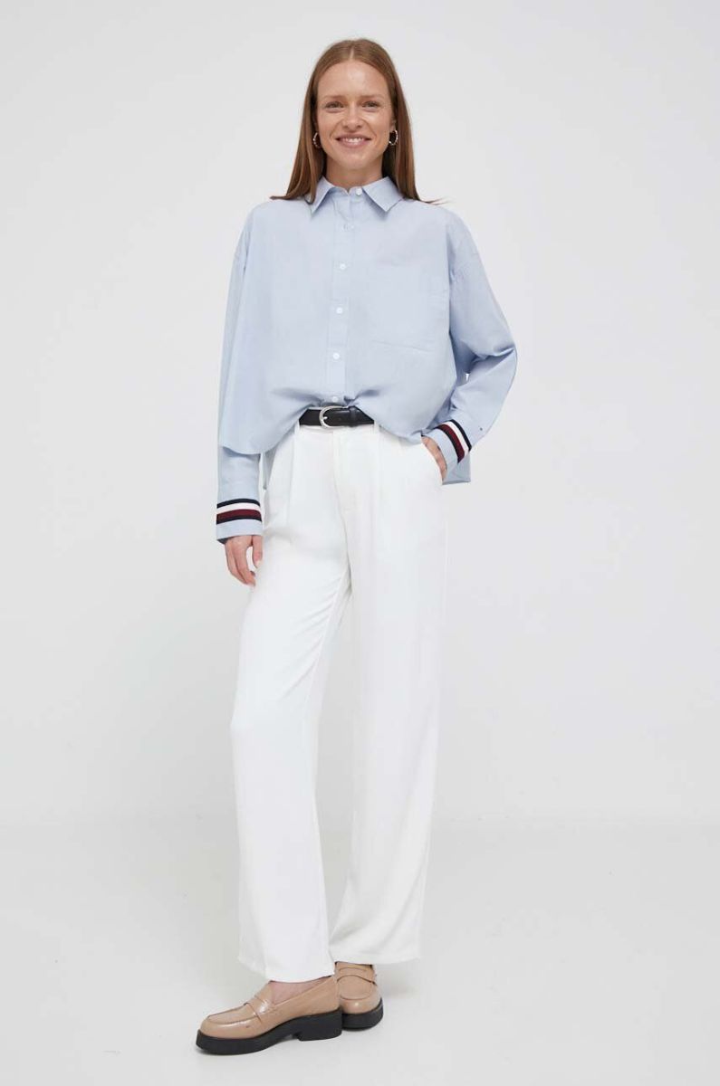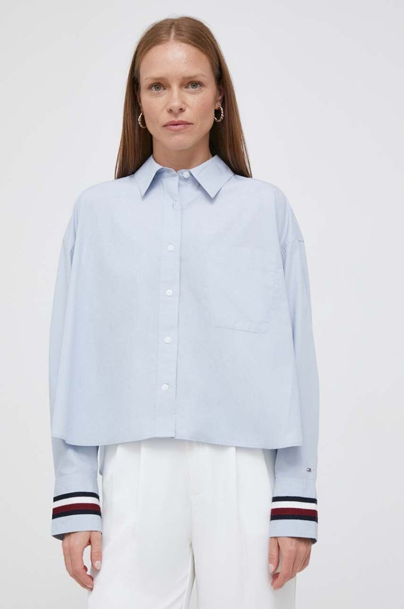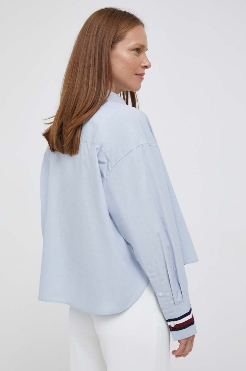 Бавовняна сорочка Tommy Hilfiger жіноча relaxed класичний комір колір блакитний (3389066)