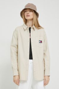 Бавовняна сорочка Tommy Jeans жіноча колір бежевий relaxed класичний комір (2960035)