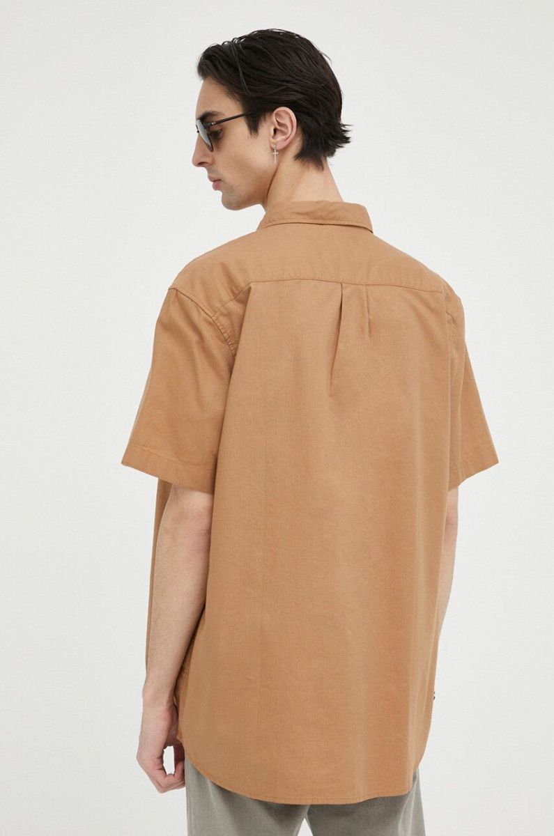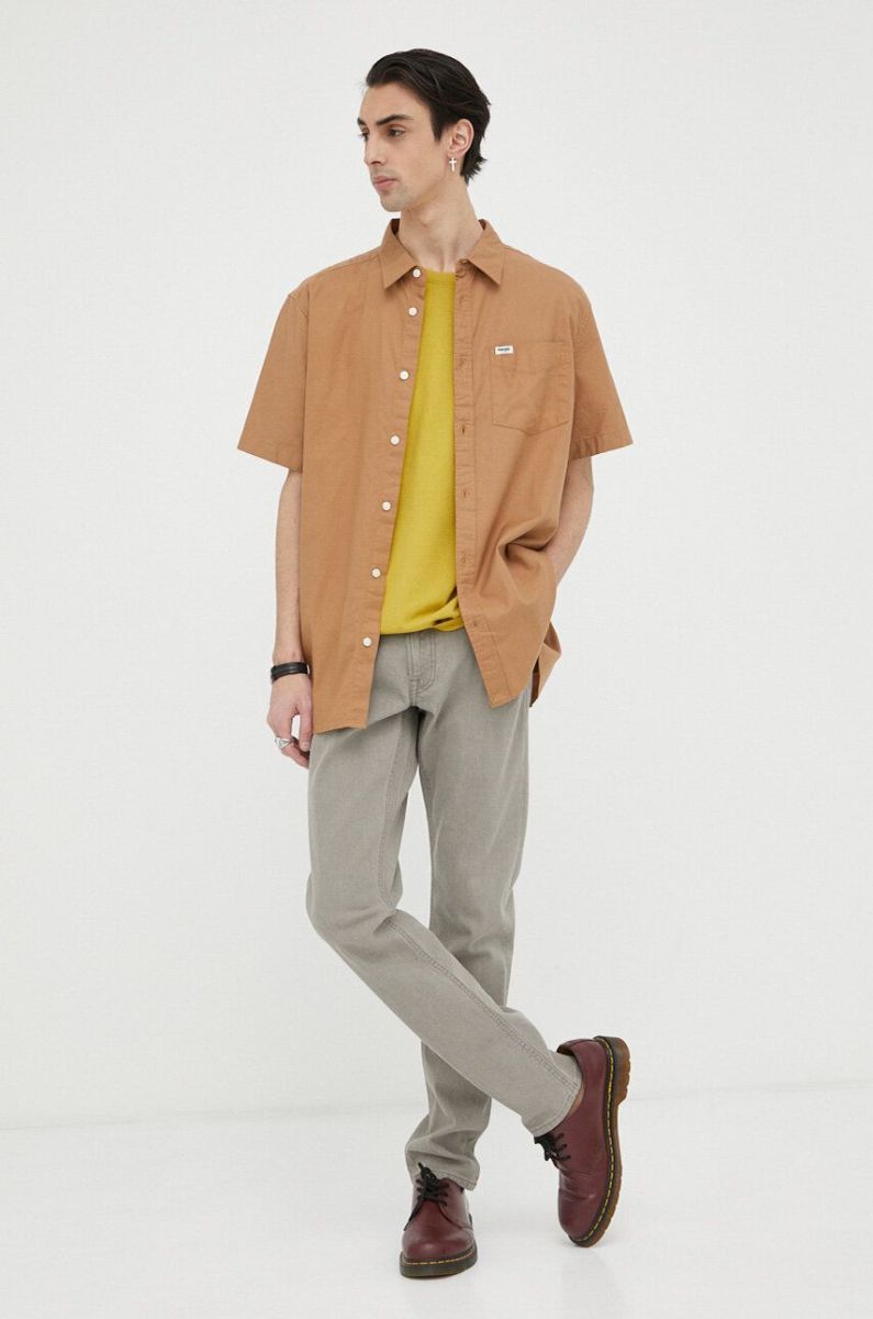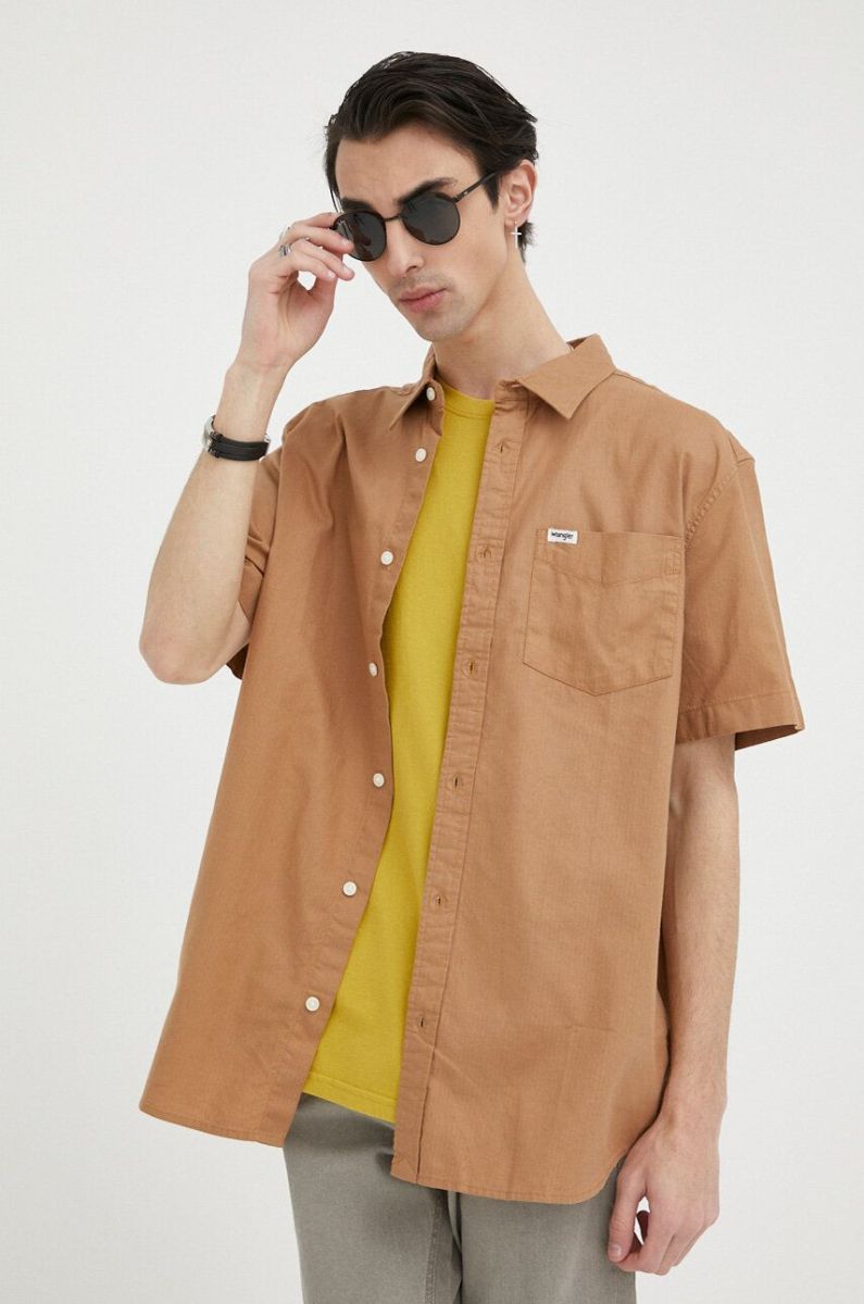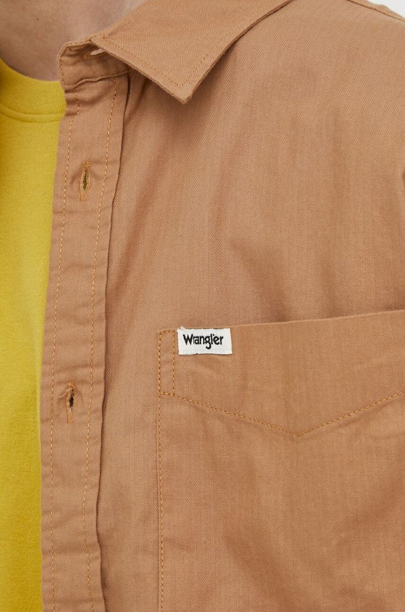 Бавовняна сорочка Wrangler чоловіча колір коричневий relaxed класичний комір