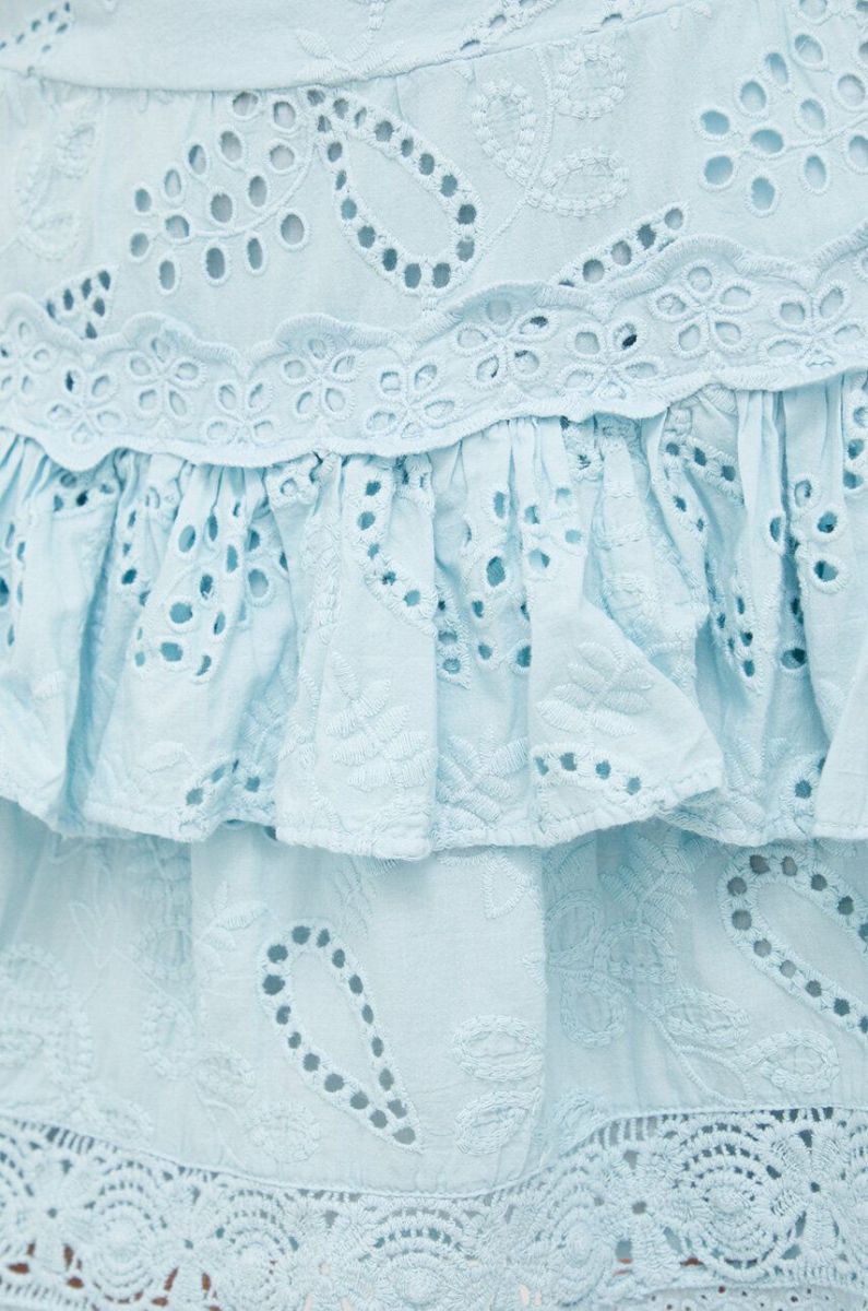 Бавовняна спідниця Guess mini розкльошена колір блакитний (3181556)
