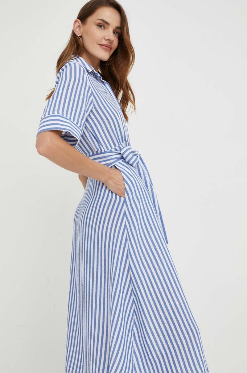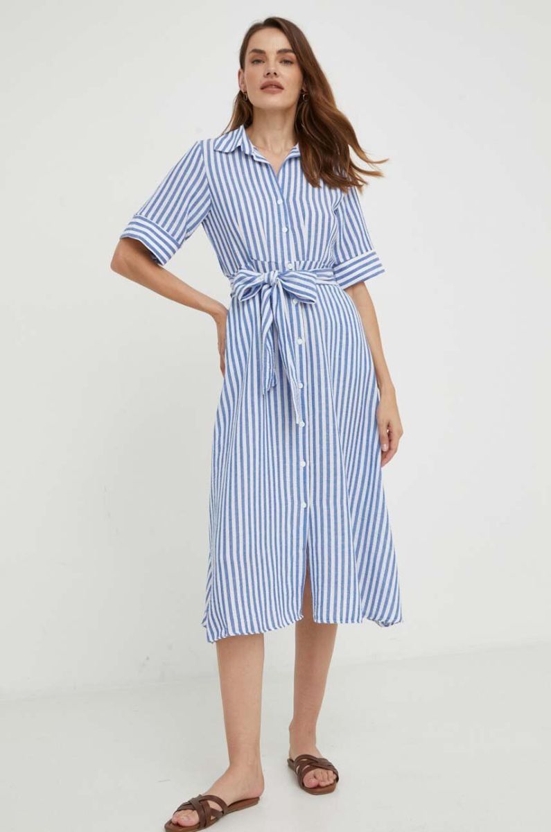 Бавовняна сукня Answear Lab колір синій midi розкльошена