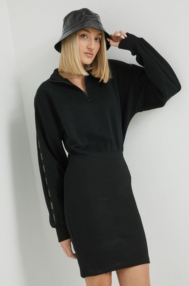Бавовняна сукня HUGO колір чорний mini облягаюча (2911599)