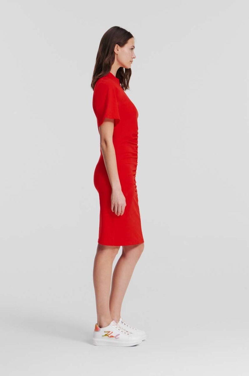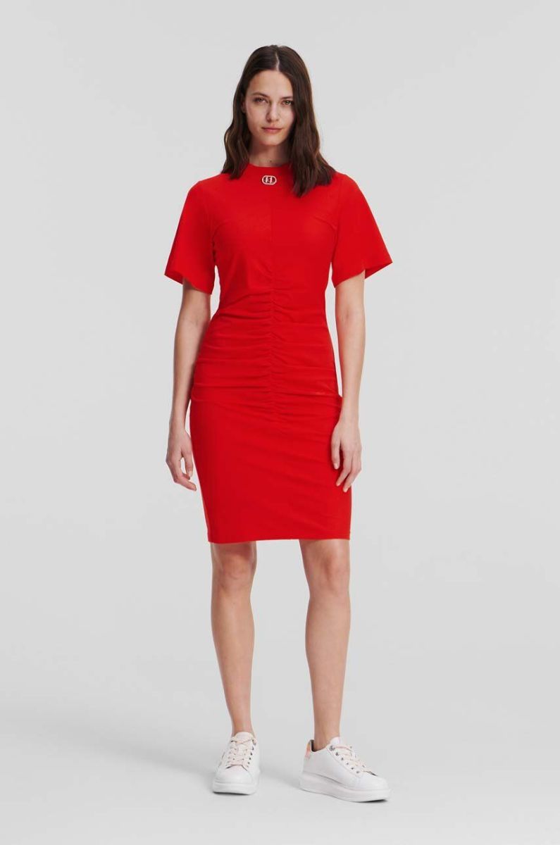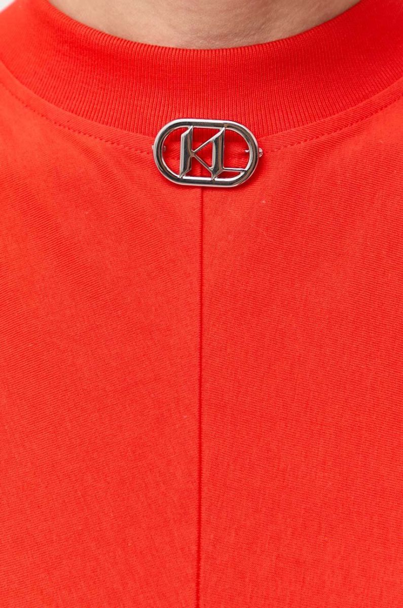 Бавовняна сукня Karl Lagerfeld колір помаранчевий mini облягаюча