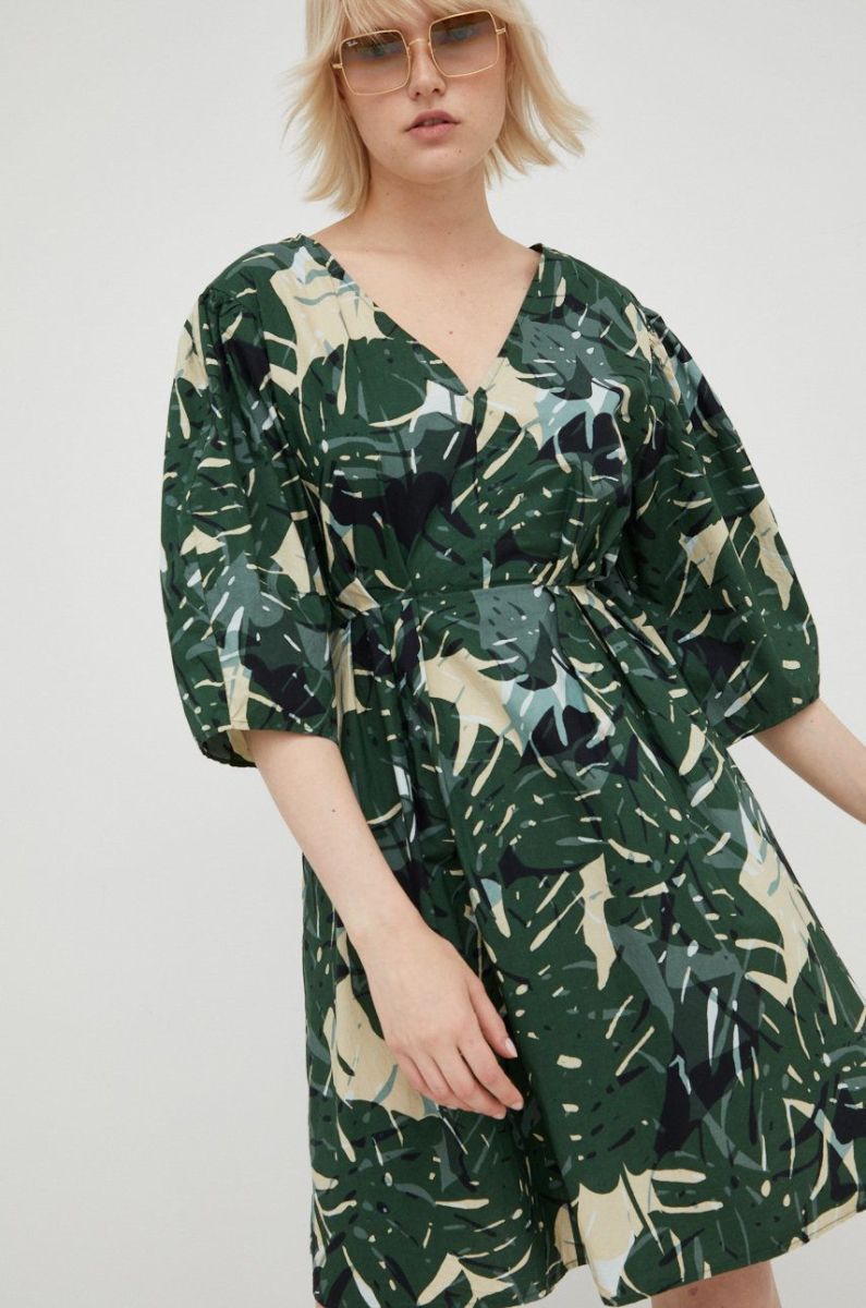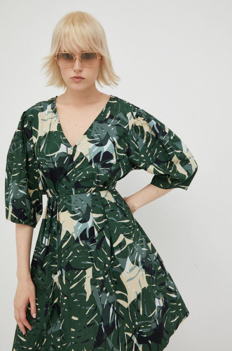 Бавовняна сукня Marc O'Polo колір зелений mini розкльошена