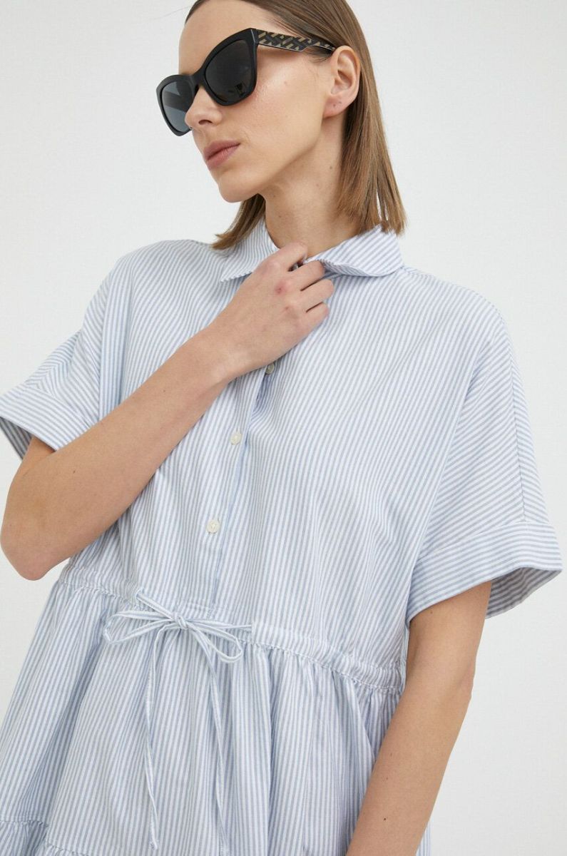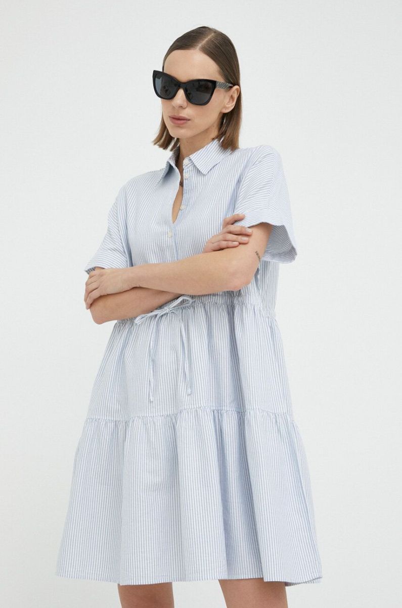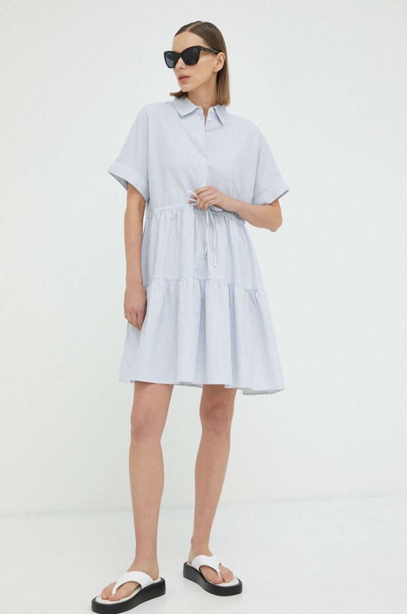 Бавовняна сукня Marc O'Polo mini розкльошена колір блакитний (3191632)