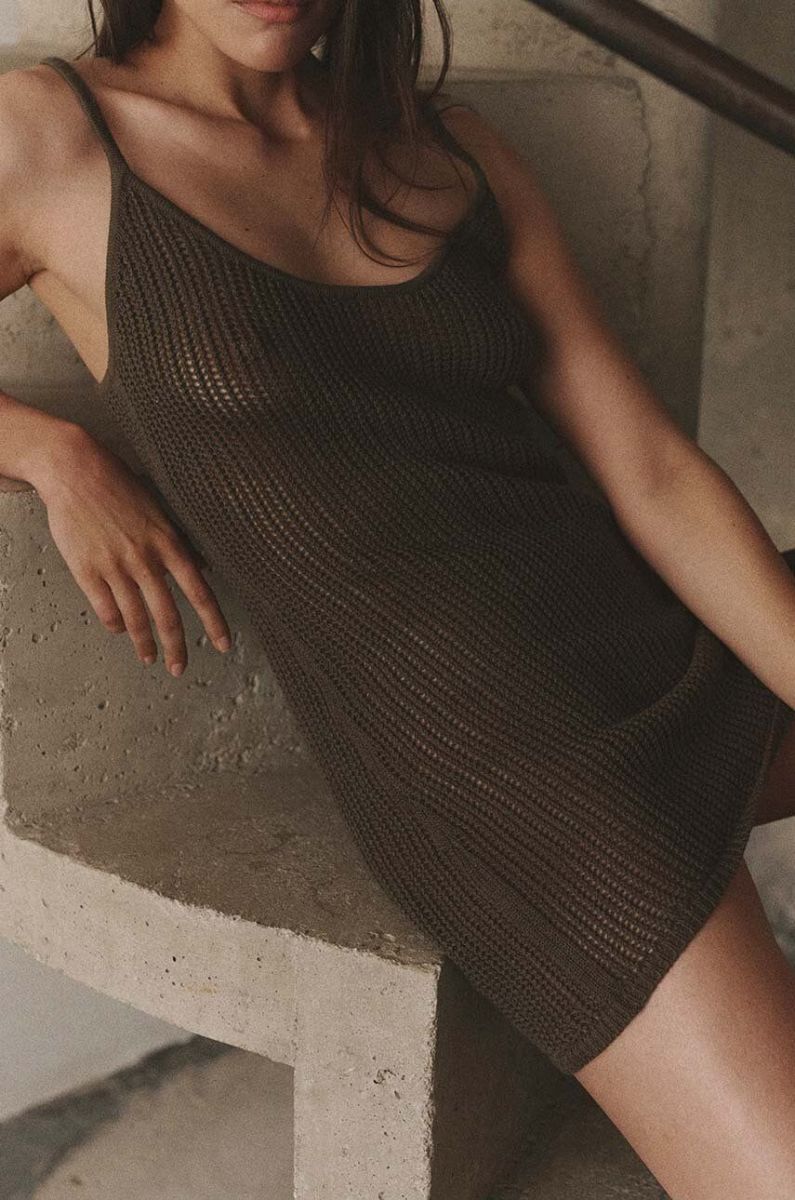 Бавовняна сукня MUUV. колір зелений mini облягаюча