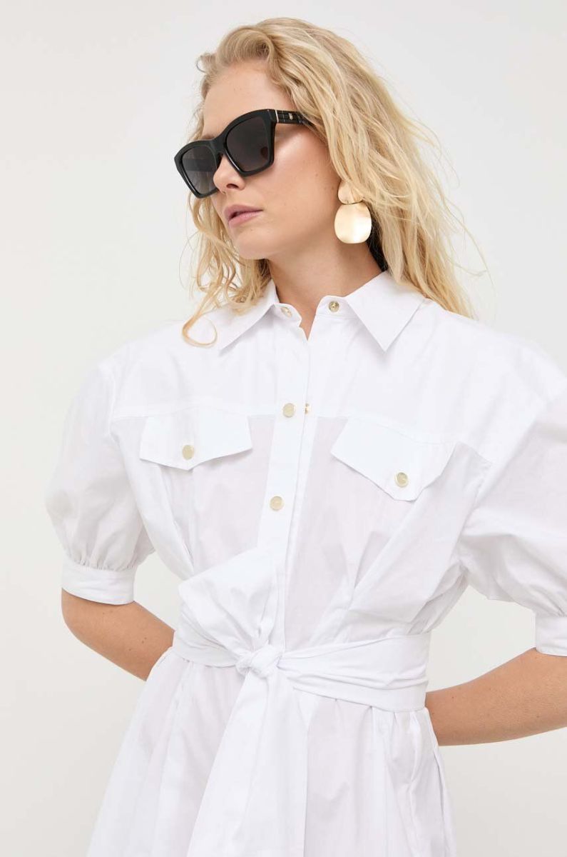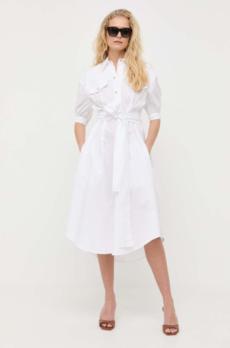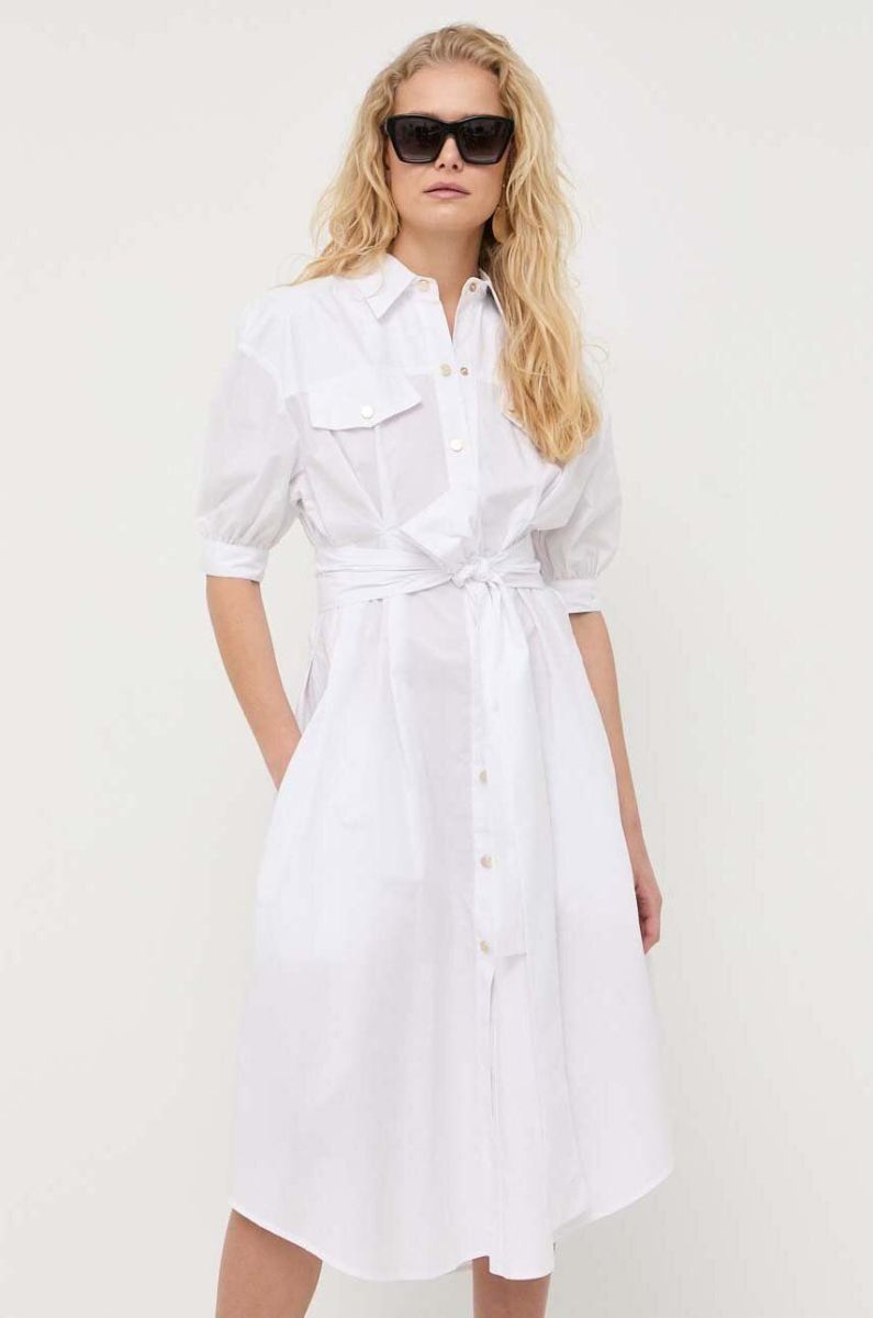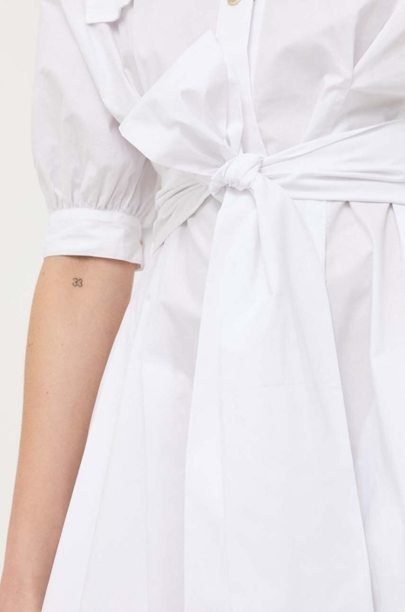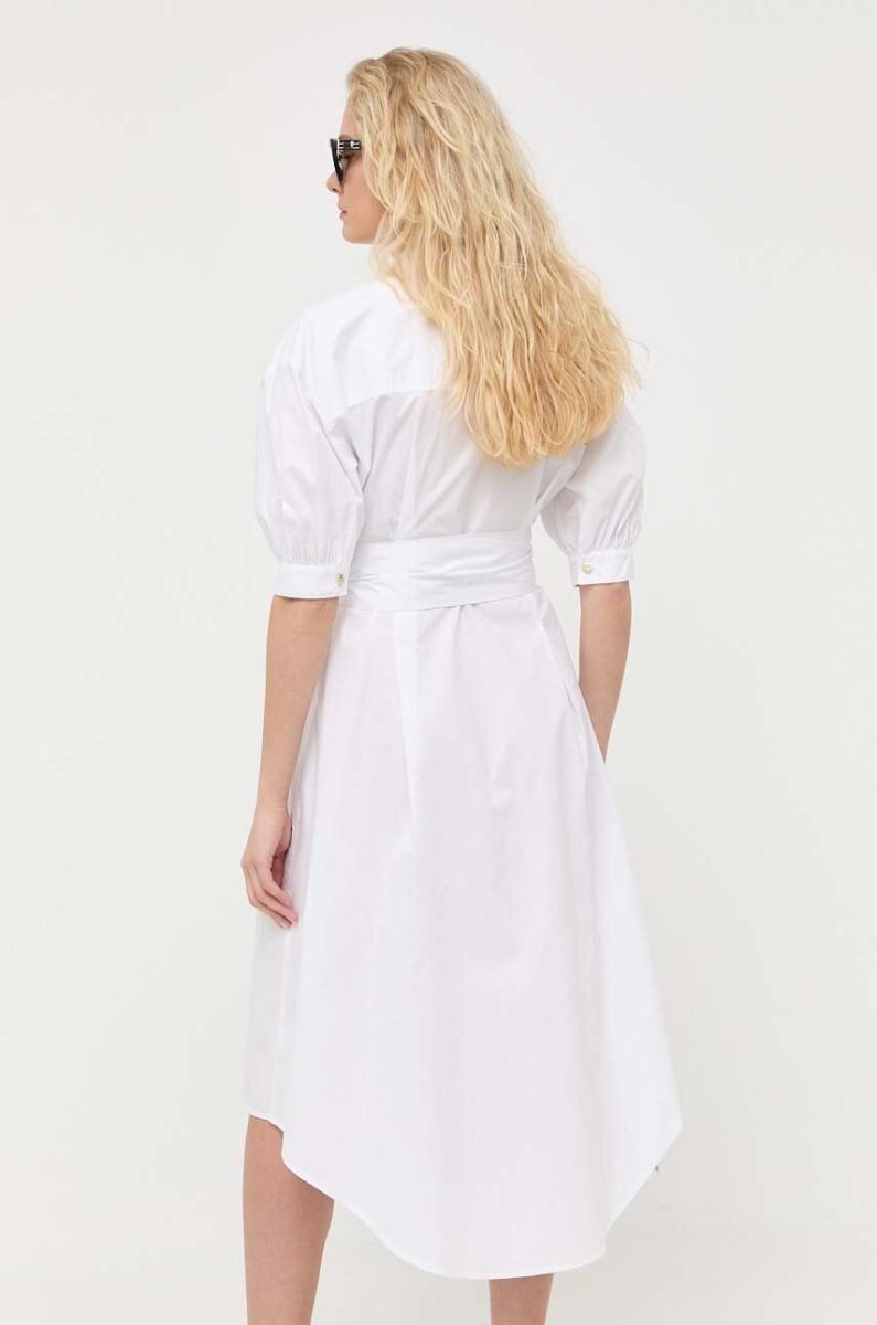Бавовняна сукня Pinko колір білий midi розкльошена