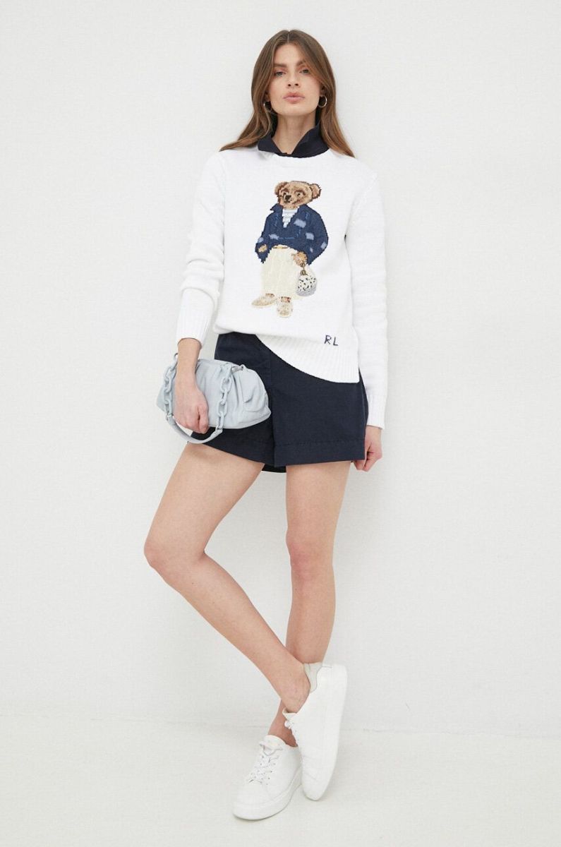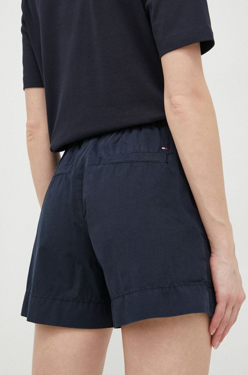Бавовняні шорти Tommy Hilfiger колір синій однотонні висока посадка