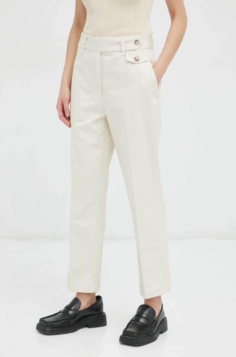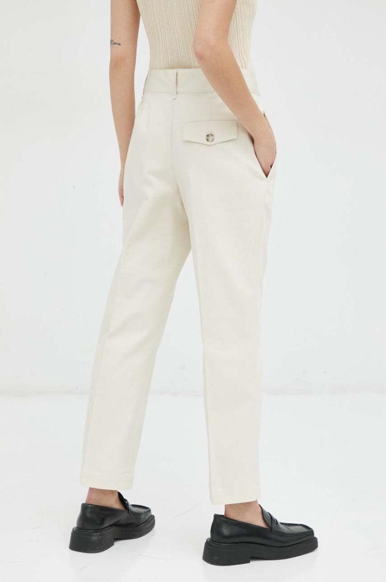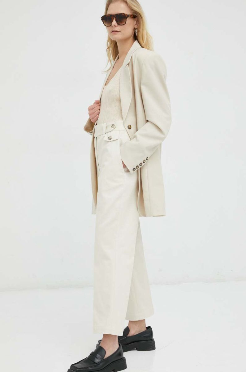 Бавовняні штани Lovechild колір бежевий широке висока посадка
