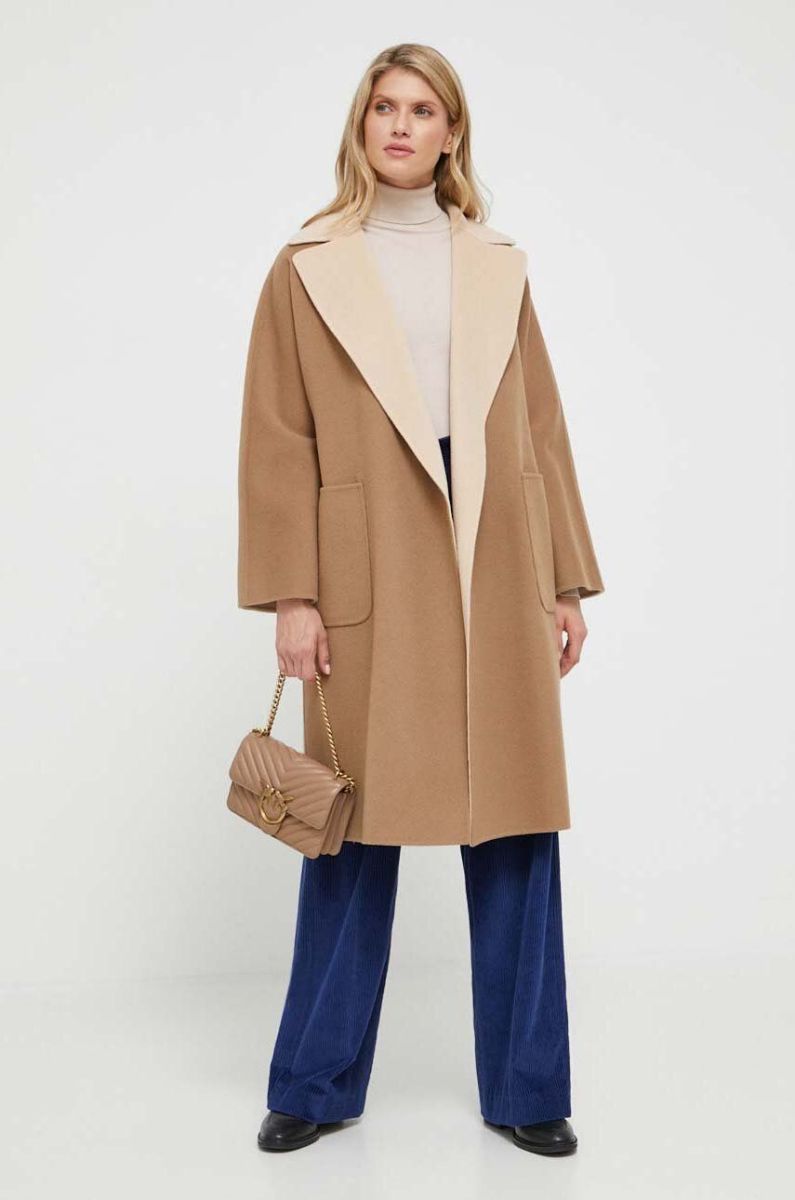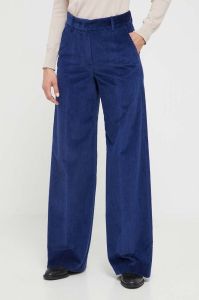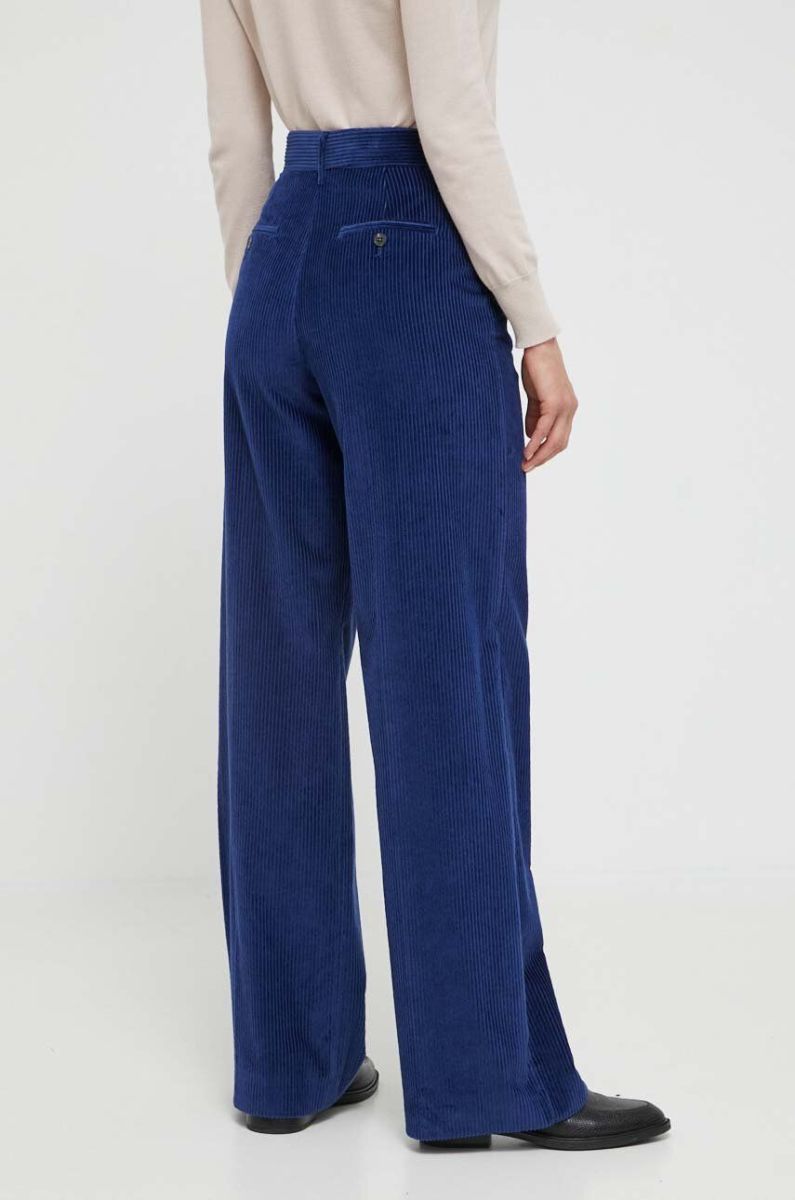 Бавовняні штани Weekend Max Mara широке висока посадка колір блакитний