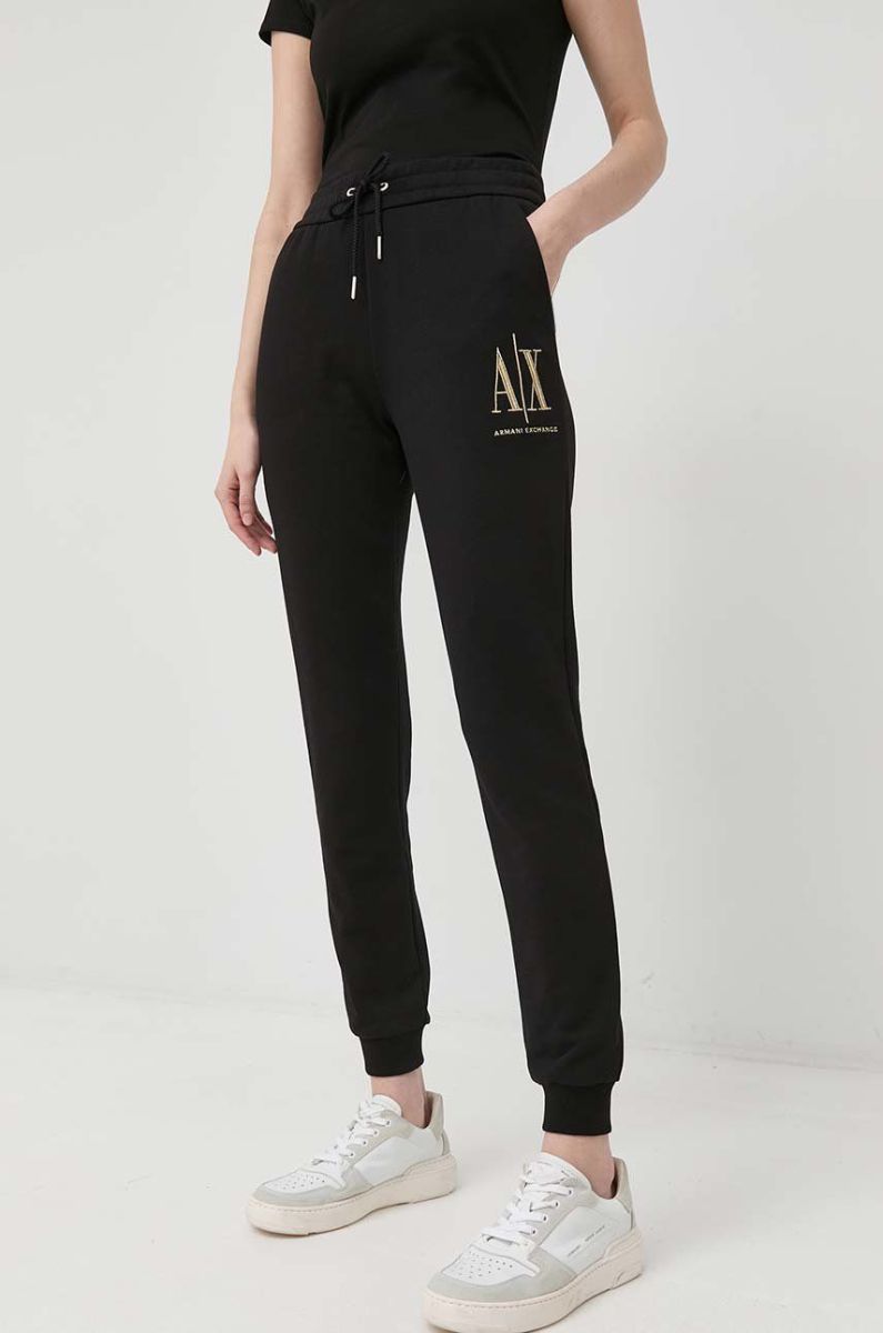Бавовняні спортивні штани Armani Exchange жіночі колір чорний з аплікацією