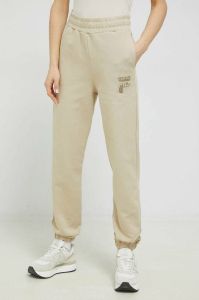Бавовняні спортивні штани Fila колір бежевий однотонні (3036318)