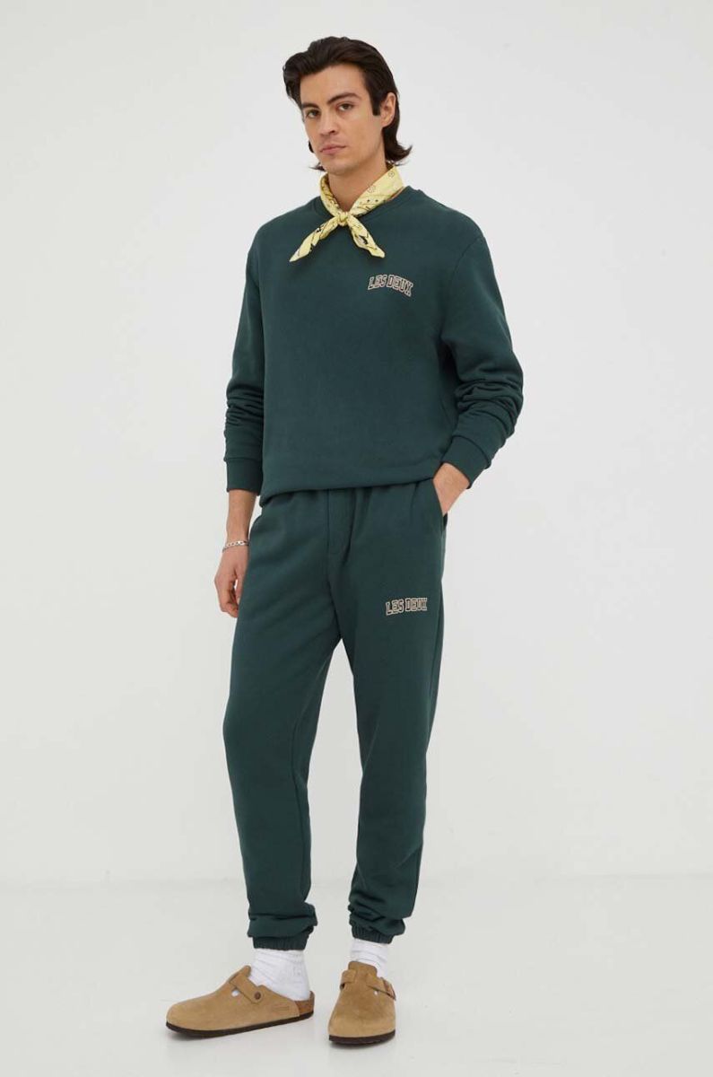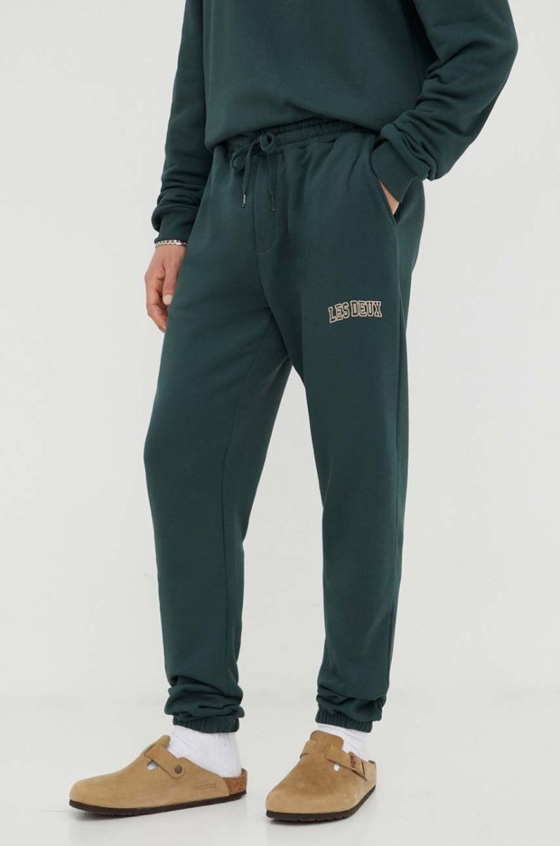 Бавовняні спортивні штани Les Deux колір зелений з принтом