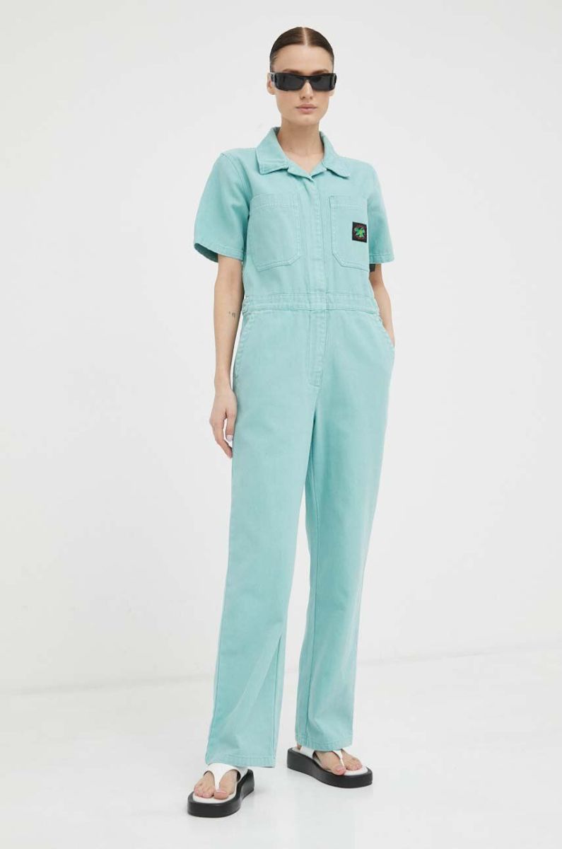 Бавовняний комбінезон Deus Ex Machina колір бірюзовий з бавовни з коміром