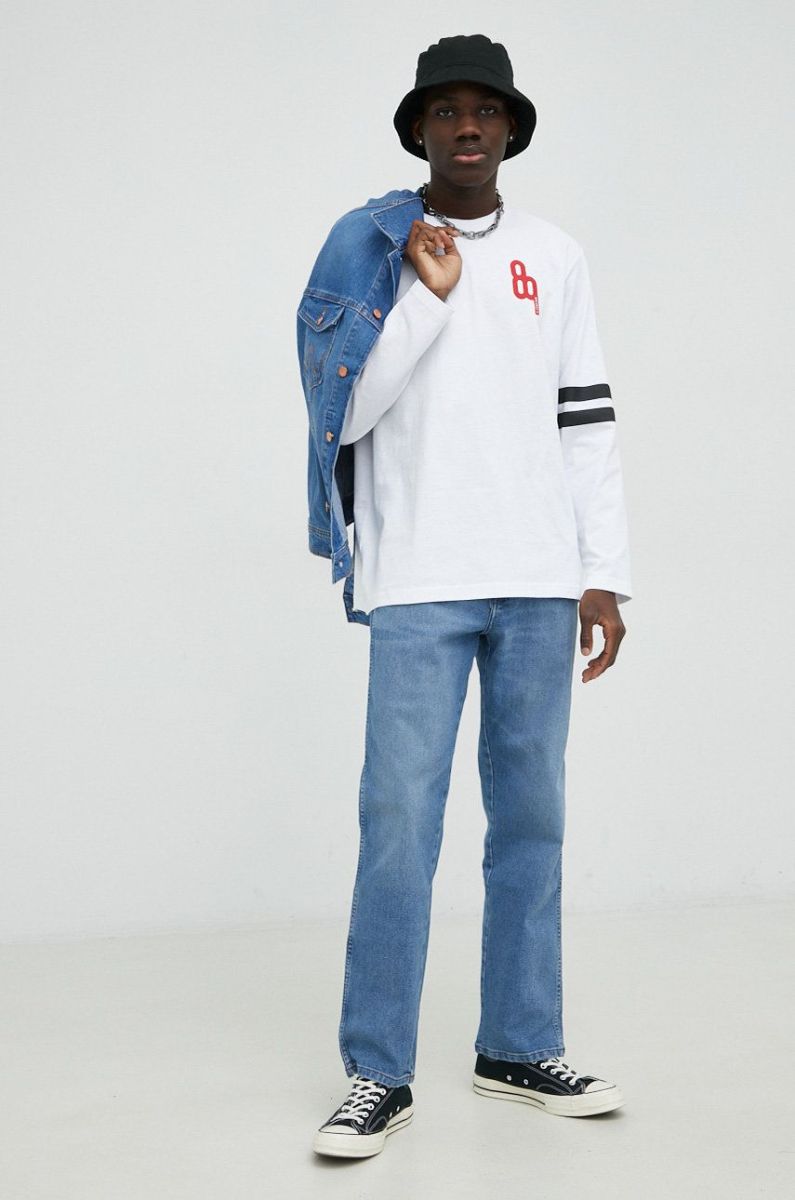 Бавовняний лонгслів G-Star Raw чоловіча колір білий з принтом
