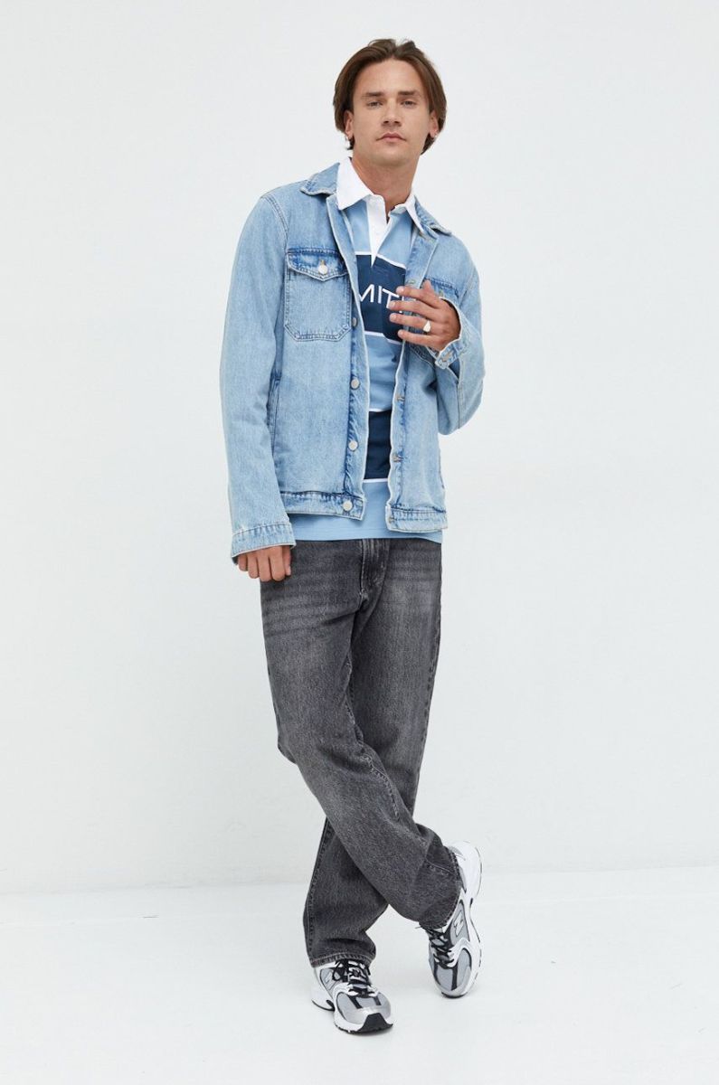 Бавовняний лонгслів Primitive з аплікацією колір блакитний