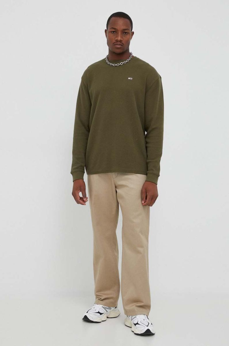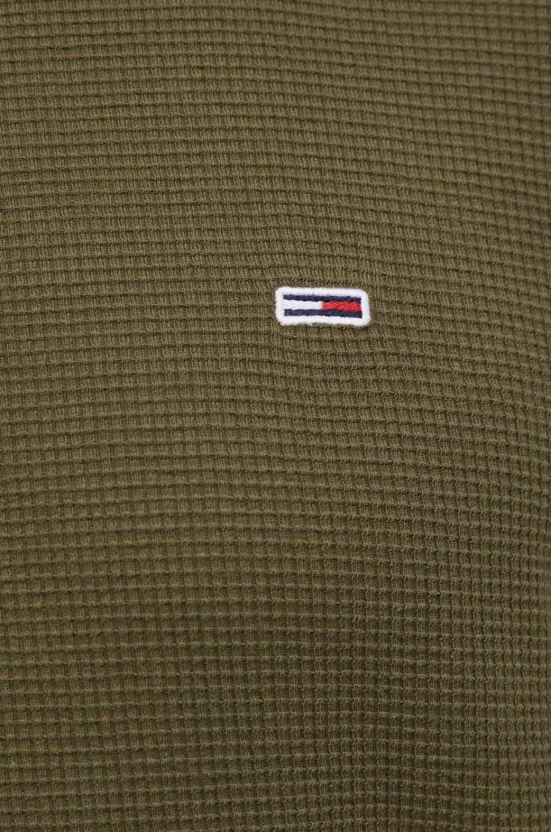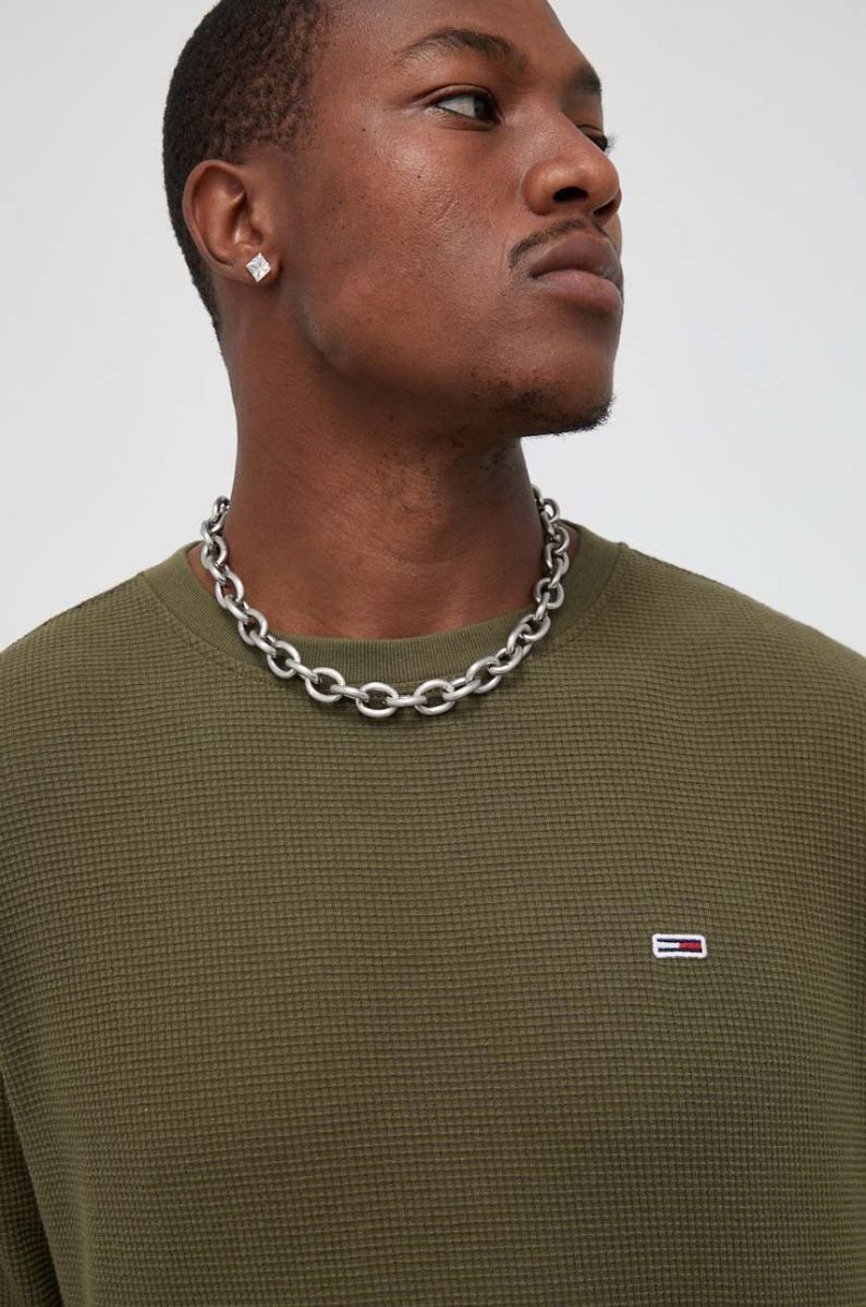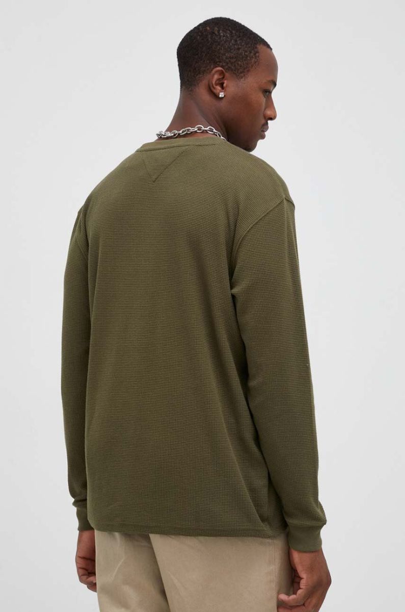 Бавовняний лонгслів Tommy Jeans колір зелений однотонний