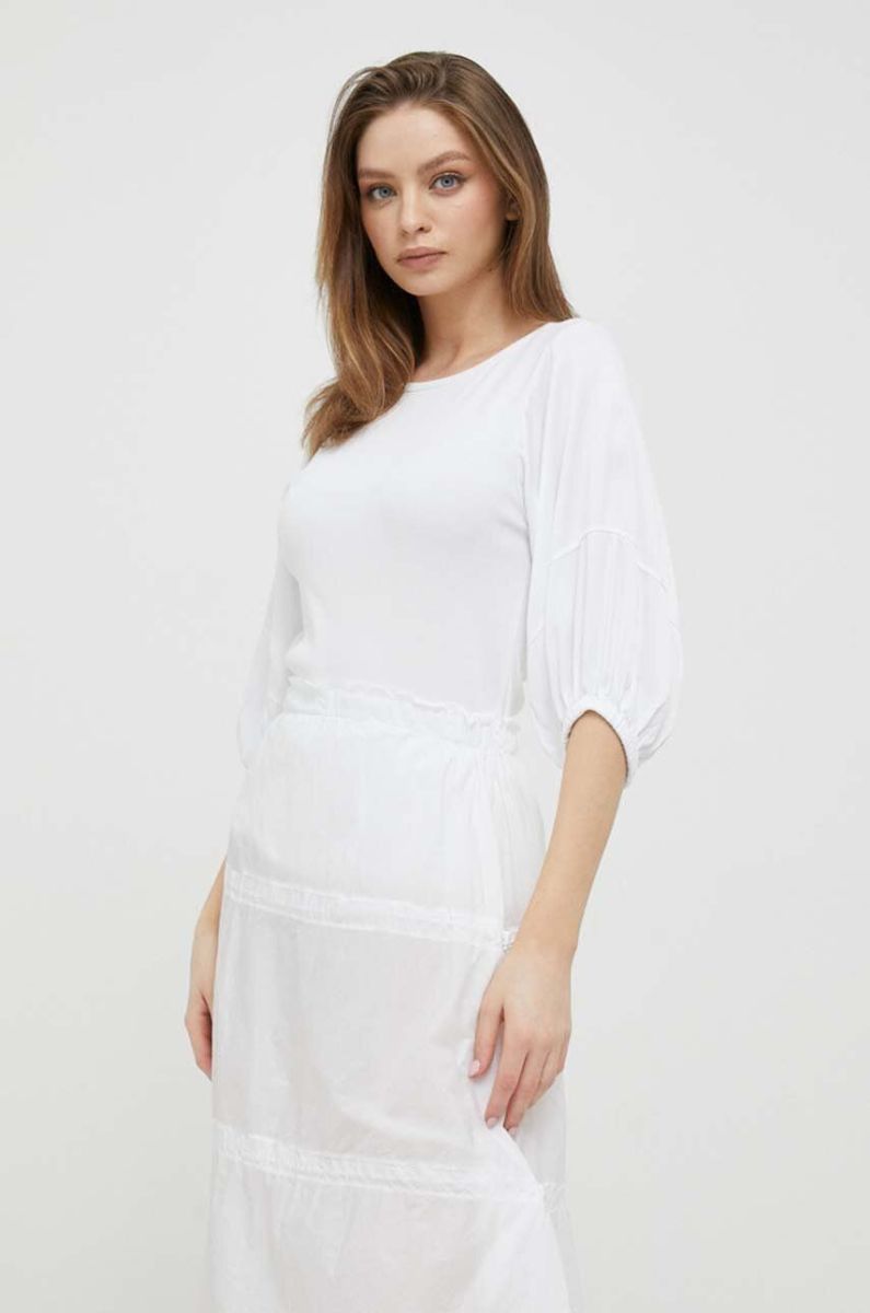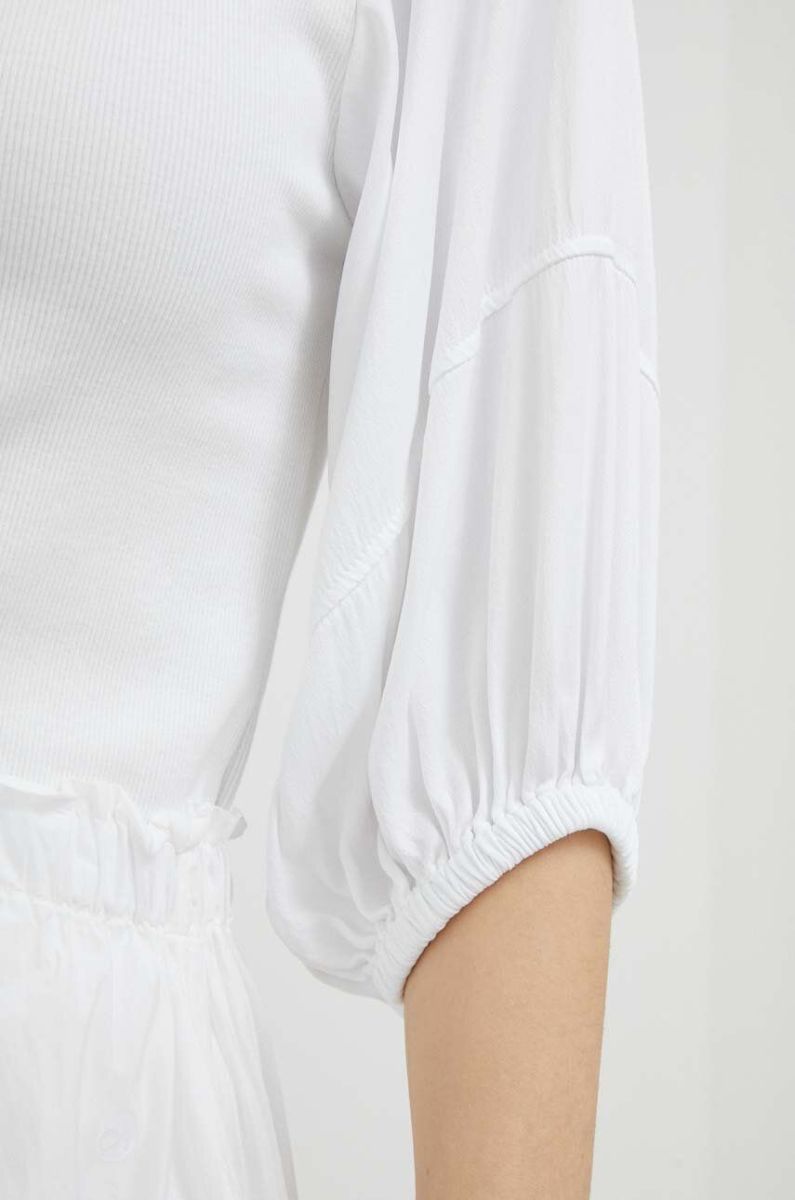 Блузка з колекції Deha виконана із поєднання двох різних матеріалів. Модель з надзвичайно приємного на дотик матеріалу.