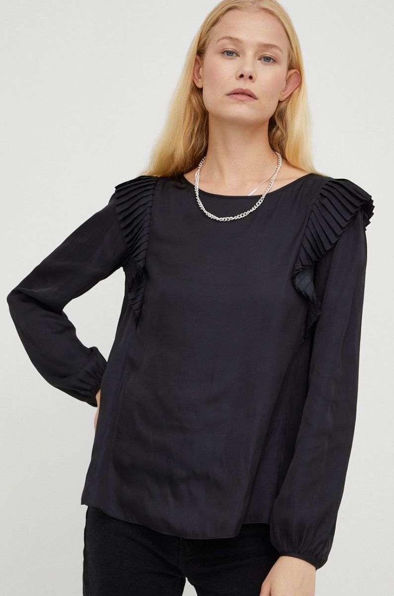 Блузка The Kooples жіноча колір чорний однотонна (2514912)