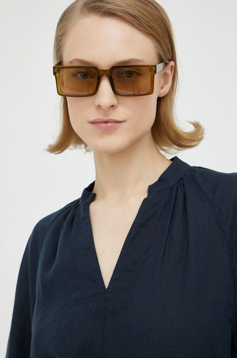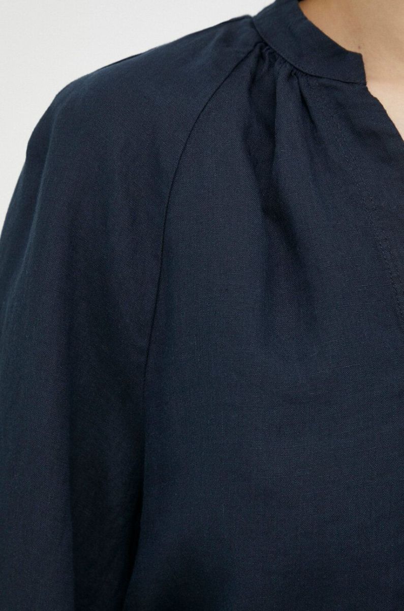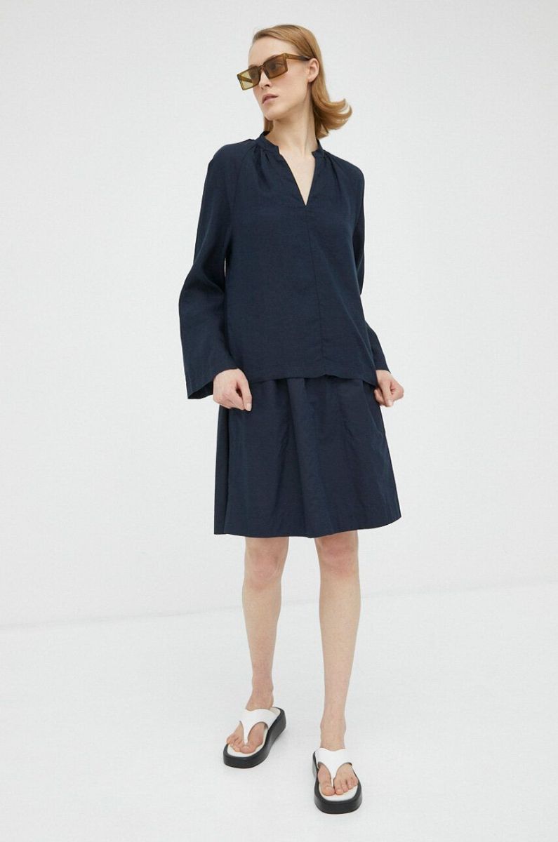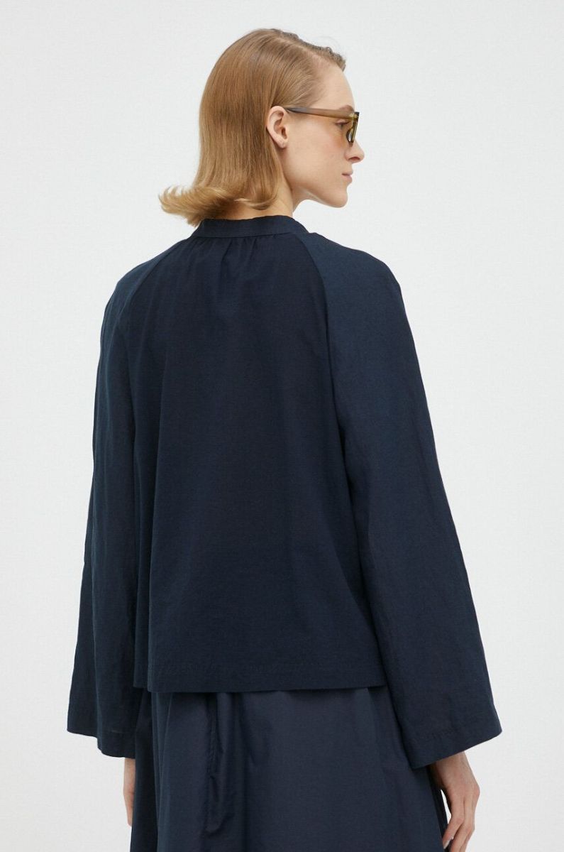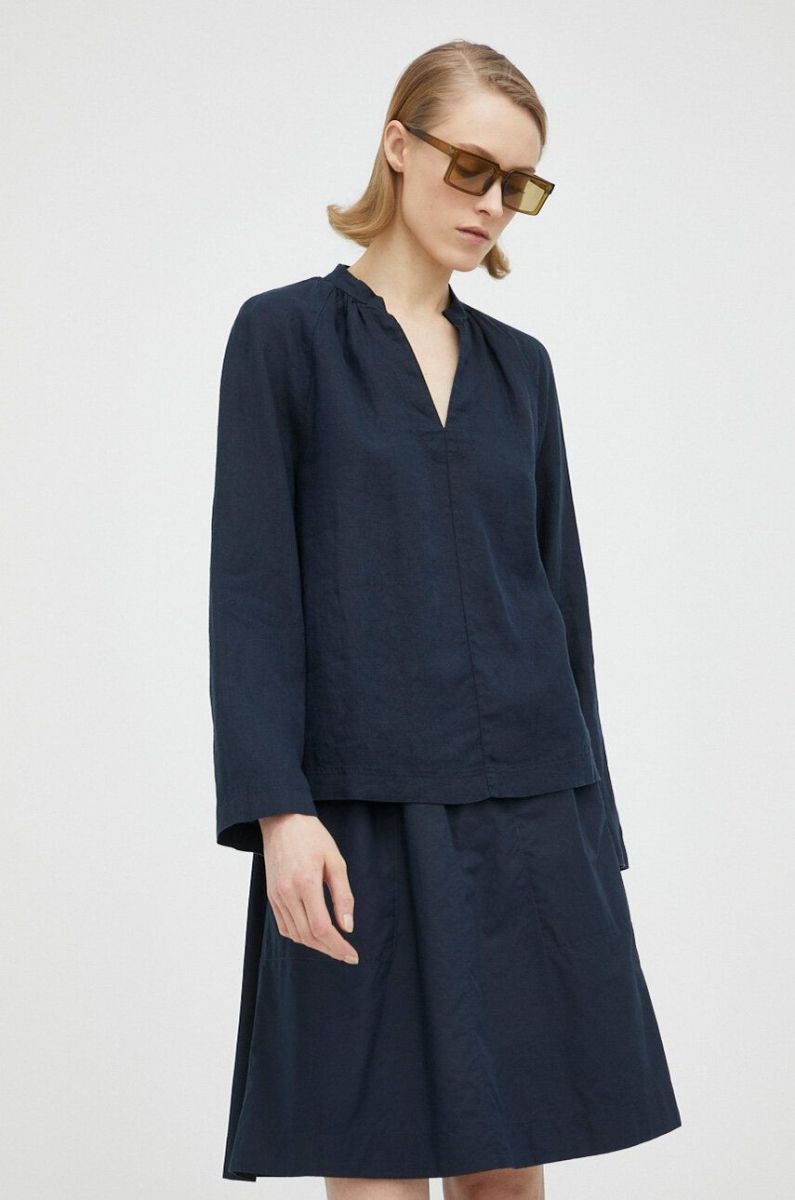 Блузка з домішкою льону Marc O'Polo колір синій однотонна