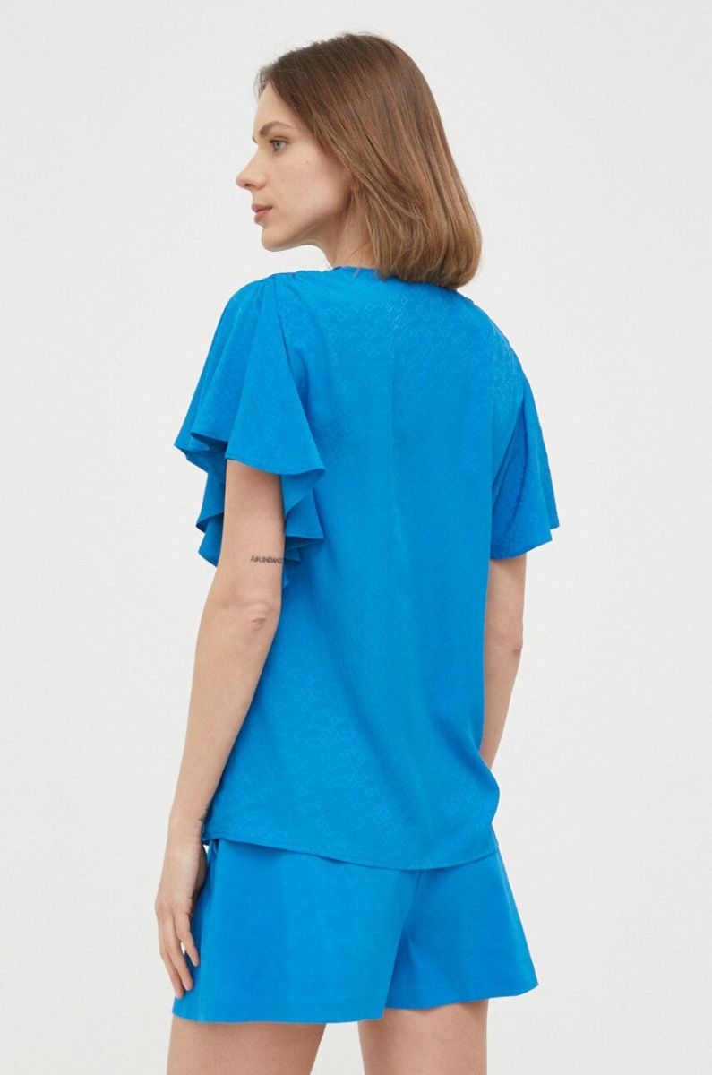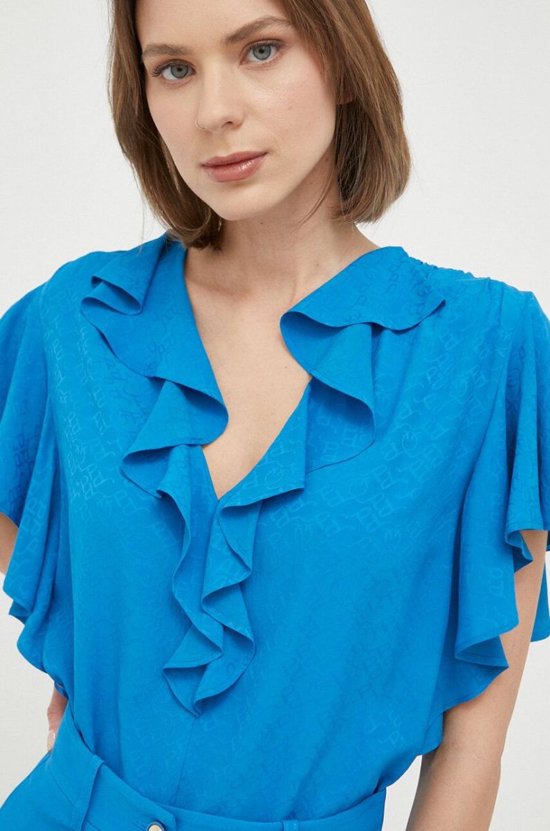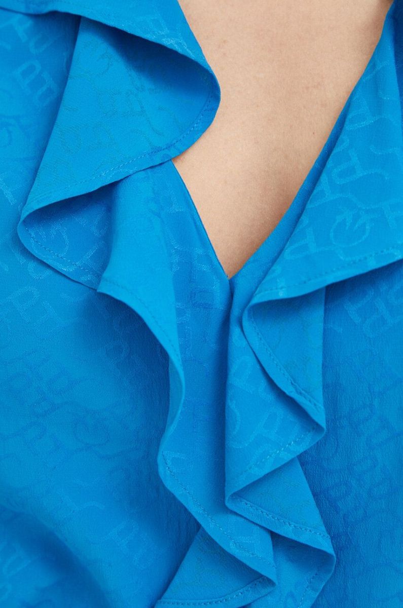Блузка з домішкою шовку Pinko однотонна колір блакитний