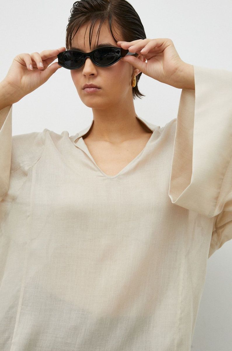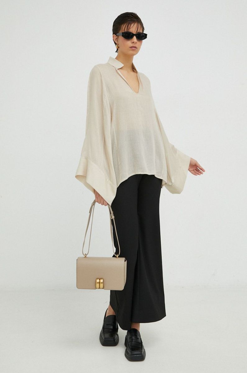 Блузка з домішкою вовни By Malene Birger Lomaria жіноча колір бежевий однотонна