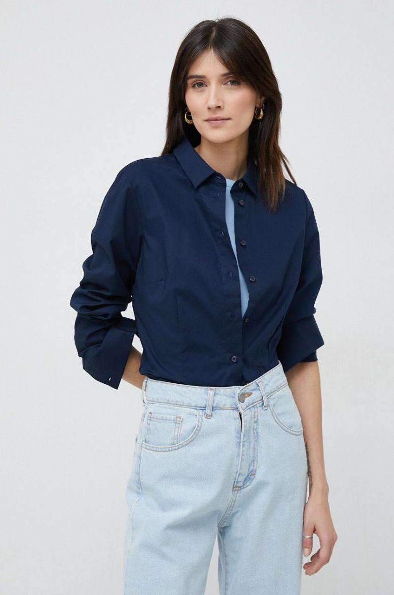 Боді Seidensticker жіноча колір синій slim класичний комір
