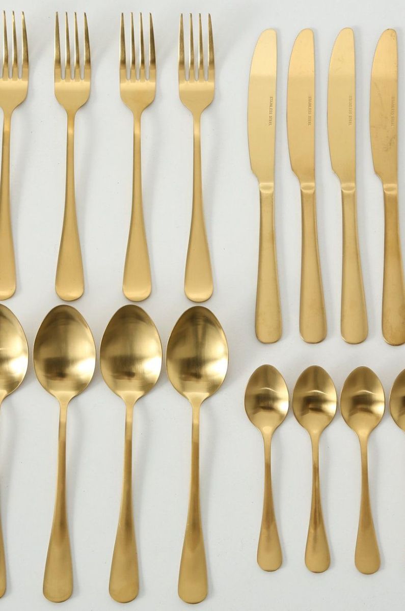 - Набір столових приладів на 4 особи. Включає ложку, виделку, ніж і чайну ложку.