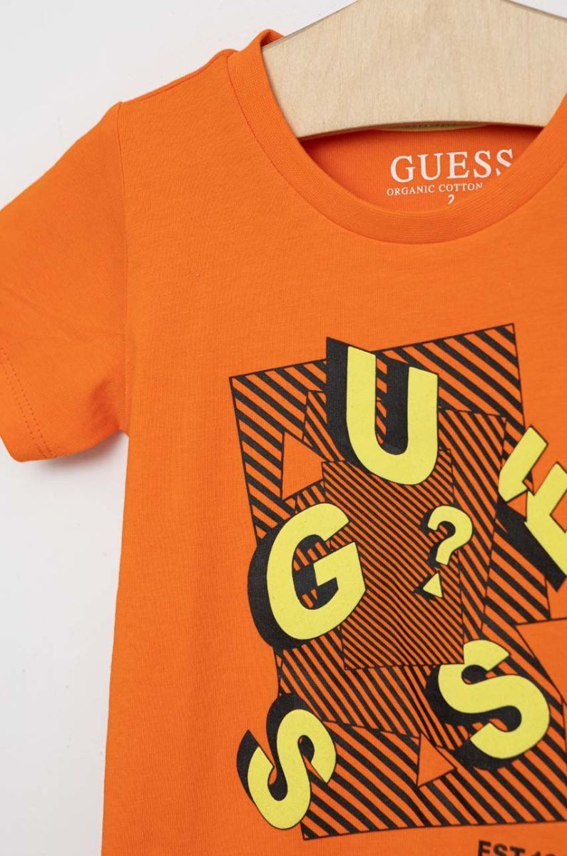 Дитяча бавовняна футболка Guess колір помаранчевий візерунок (2948746)