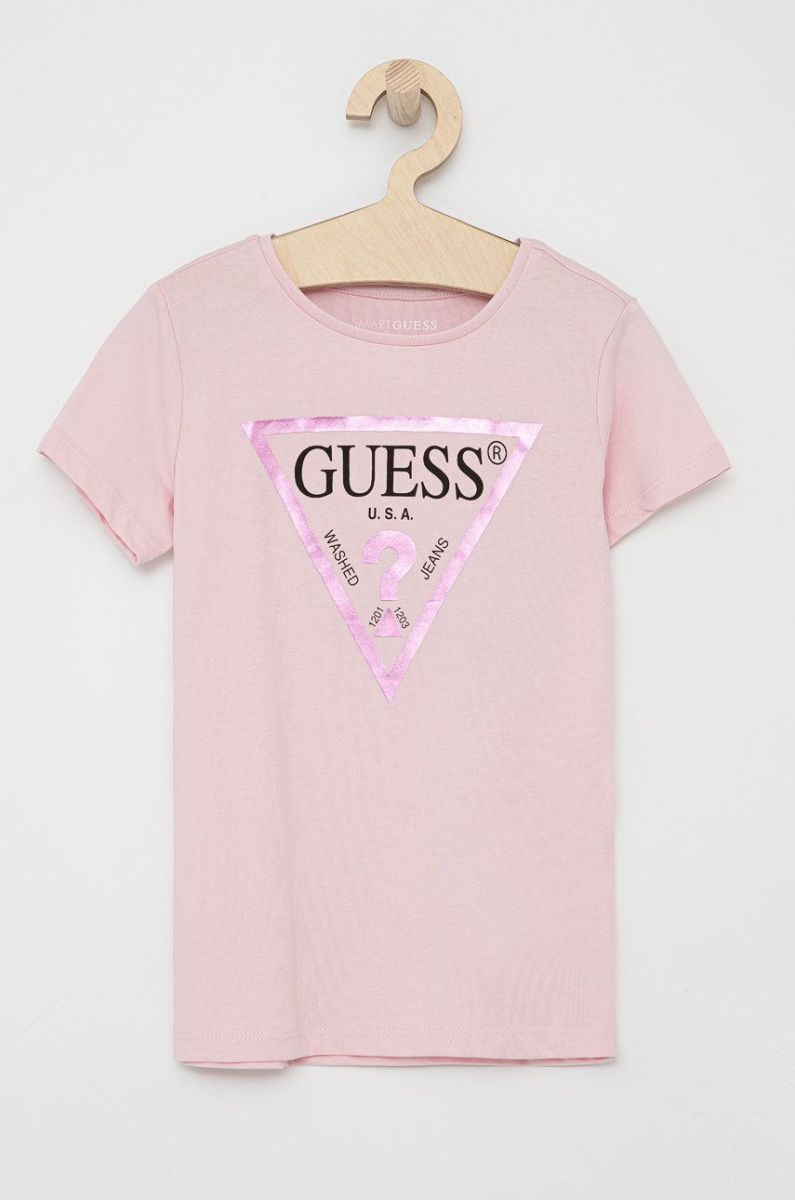 Дитяча бавовняна футболка Guess колір рожевий (1523047)