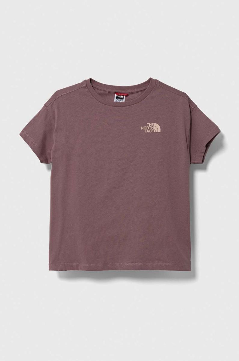 Дитяча бавовняна футболка The North Face G VERTICAL LINE S/S TEE колір коричневий