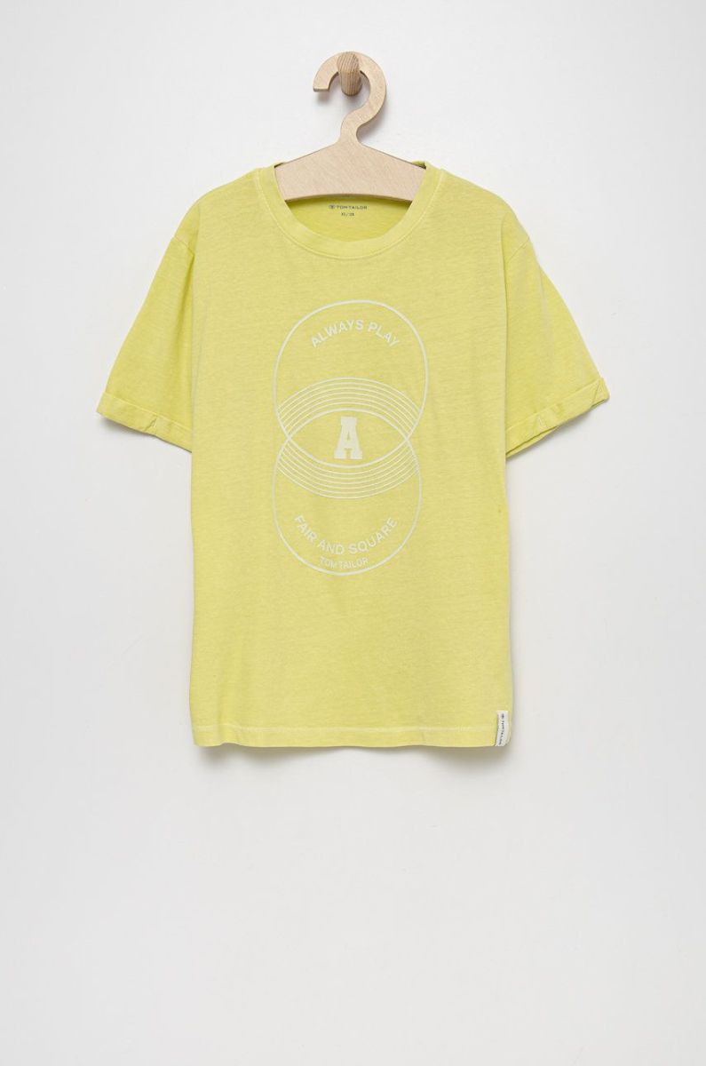 Дитяча бавовняна футболка Tom Tailor колір зелений з принтом