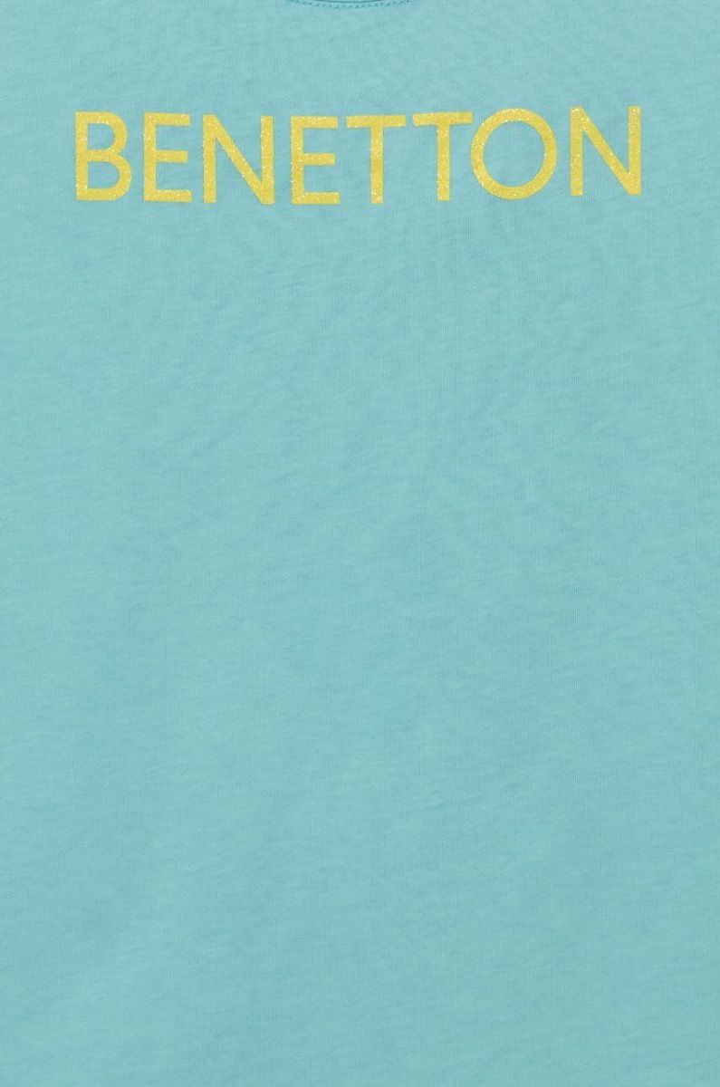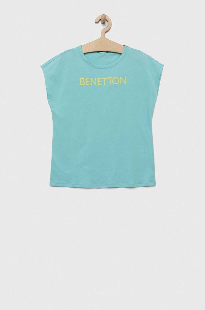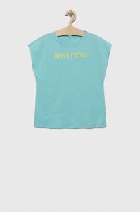 Дитяча бавовняна футболка United Colors of Benetton колір бірюзовий (3279976)