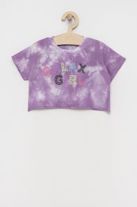 Дитяча бавовняна футболка United Colors of Benetton колір фіолетовий (2025945)