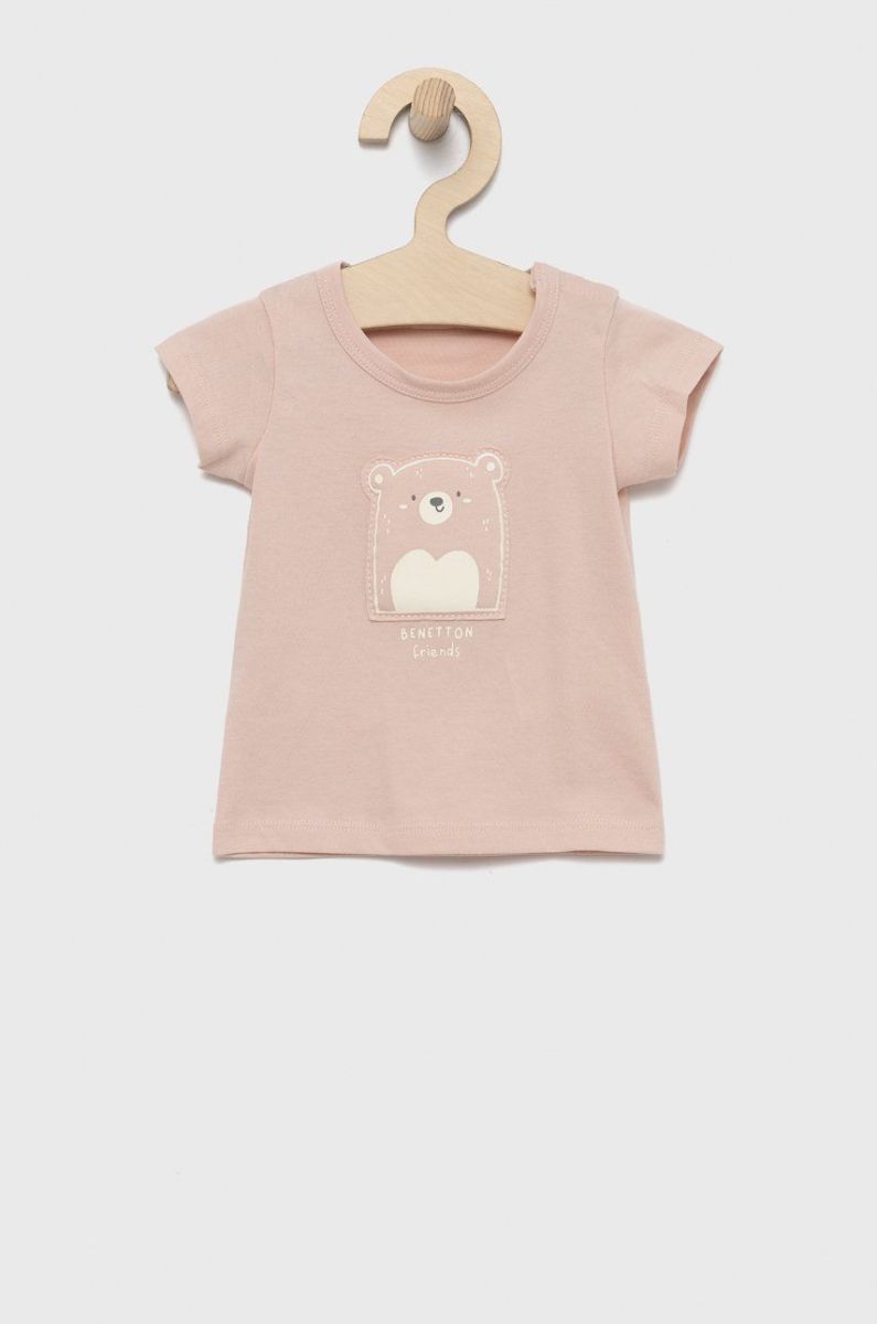 Дитяча бавовняна футболка United Colors of Benetton колір рожевий з принтом (2101022)