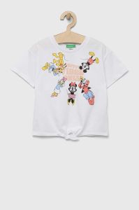 Дитяча бавовняна футболка United Colors of Benetton x Disney колір білий
