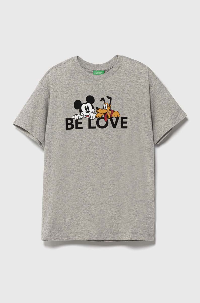 Дитяча бавовняна футболка United Colors of Benetton x Disney колір сірий з принтом