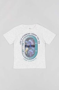 Дитяча бавовняна футболка zippy колір сірий з принтом (3160422)