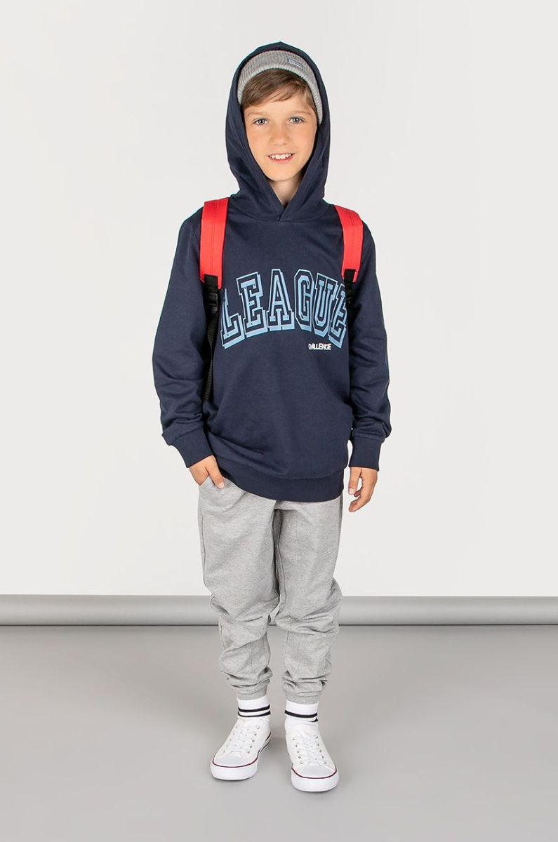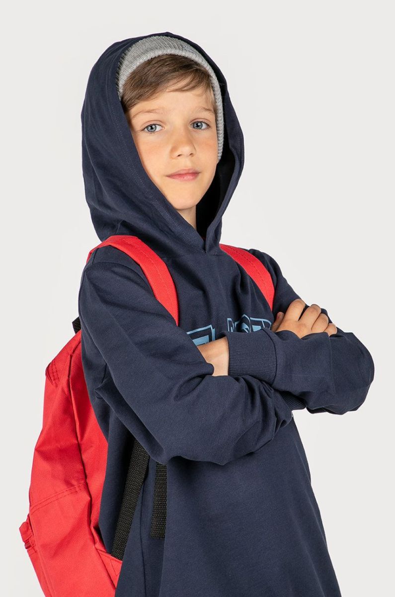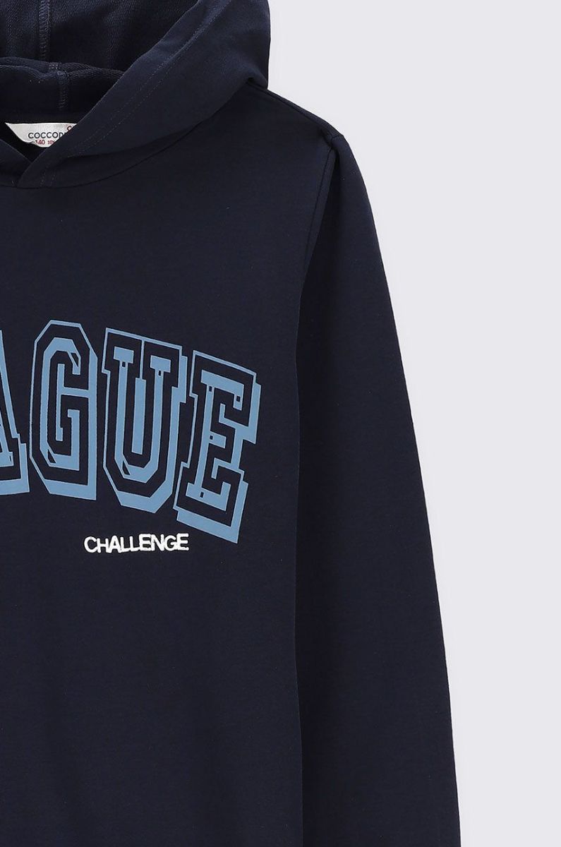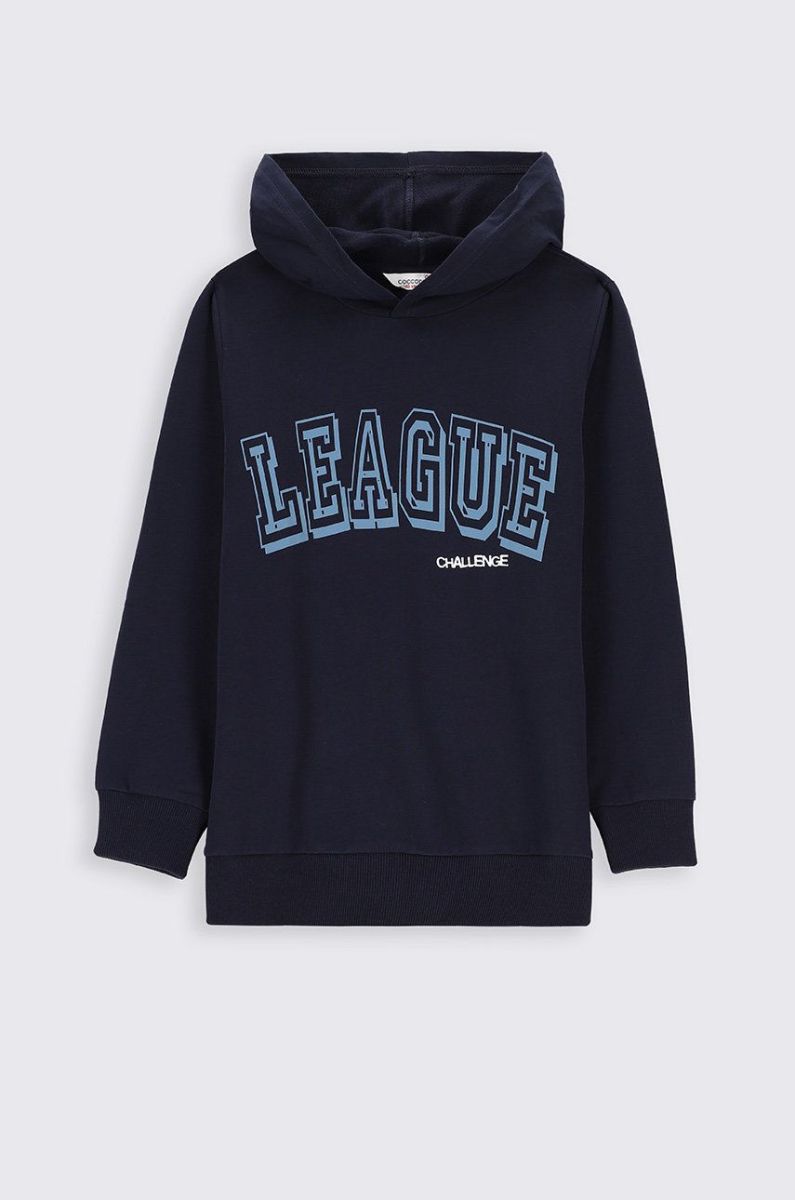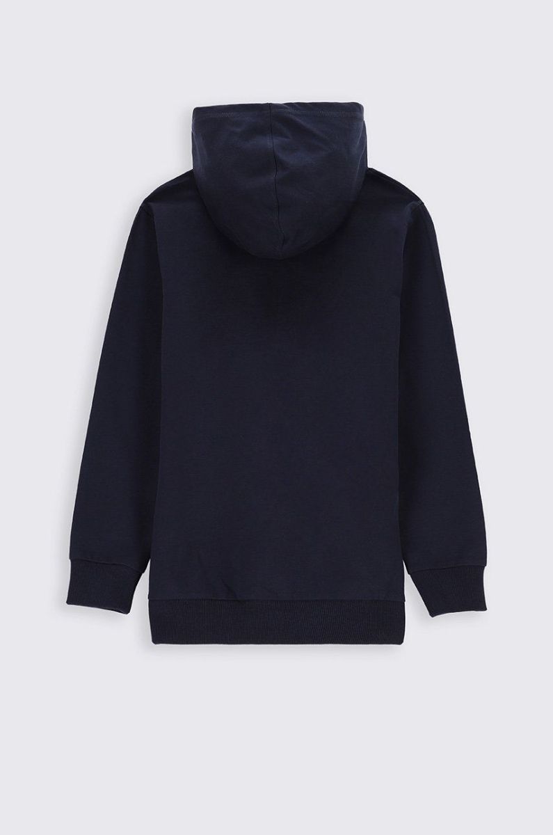 Дитяча бавовняна кофта Coccodrillo колір синій з капюшоном з принтом