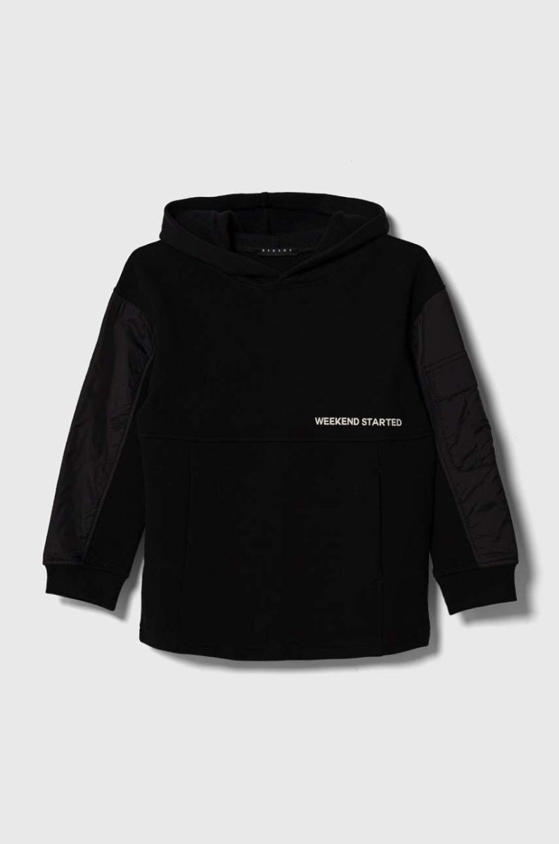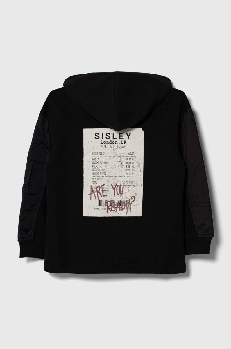 Дитяча бавовняна кофта Sisley колір чорний з капюшоном з принтом (3393873)